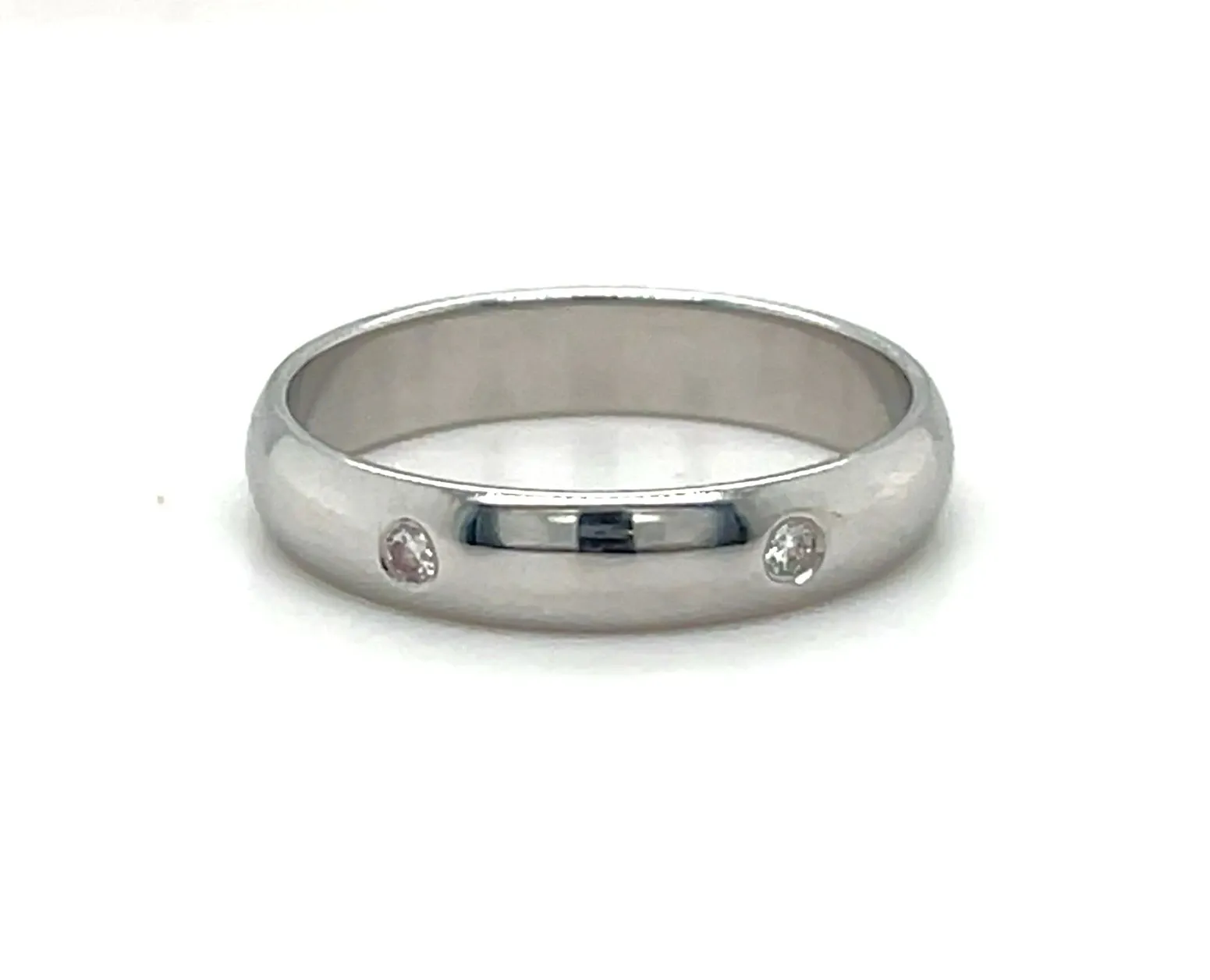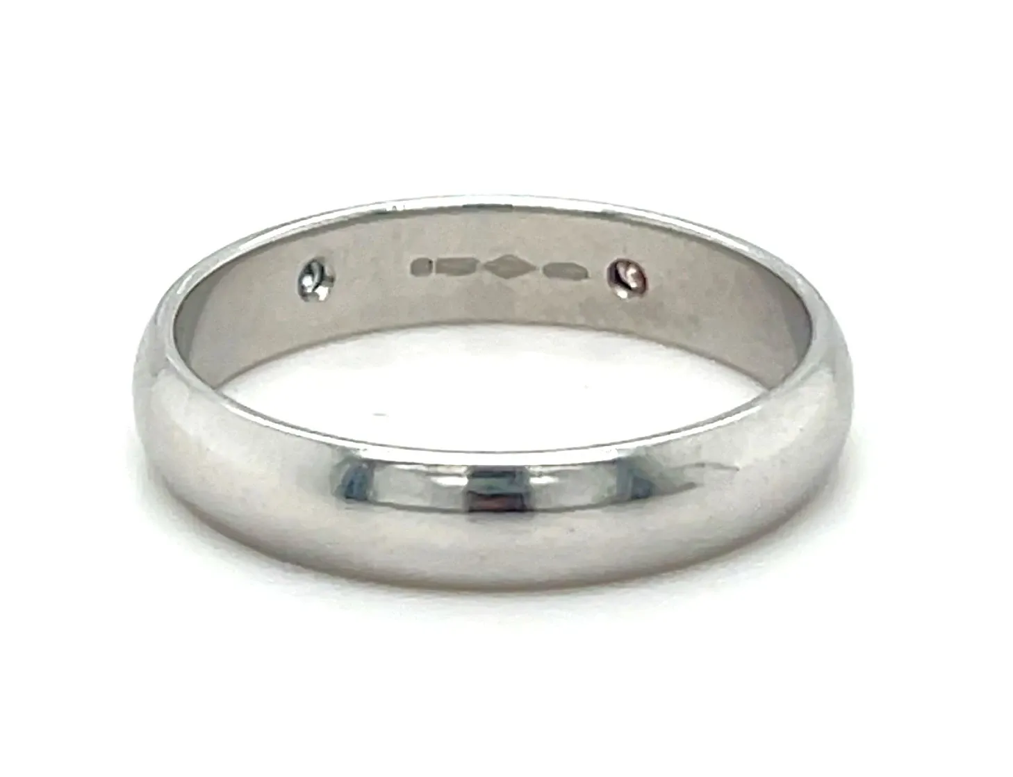 0.06ct Diamond & Platinum D Shape 4mm Wedding Band – 5.0g This elegant 4mm wedding band is crafted in durable platinum and features a subtle 0.06ct diamond accent, adding a touch of sparkle to a classic design. The D-shaped profile provides a gently rounded exterior for timeless appeal and a flat interior for a comfortable fit. Weighing 5.0 grams, this band offers a substantial feel without compromising comfort, making it ideal for daily wear. The polished platinum finish enhances the natural brilliance of both the metal and the diamond, creating a refined and enduring piece. Details: