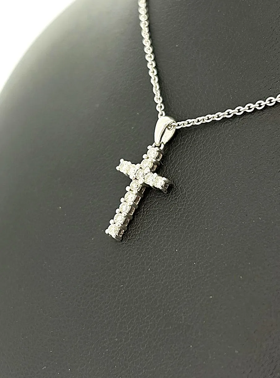 A delicate symbol of faith and elegance, this 0.15ct Diamond & 18ct White Gold Cross Pendant is a timeless piece for everyday wear or special occasions. Crafted from lustrous 18ct white gold and weighing approximately 1.0 gram, the pendant features a refined cross design measuring 20mm x 9.6mm x 2.5mm. Adorned with sparkling diamonds totalling 0.15 carats, each stone is expertly set to catch the light and enhance the pendant’s subtle sophistication. Its compact size and polished finish make it ideal for layering with other necklaces or wearing alone as a delicate statement. Perfect as a gift or a meaningful addition to your personal collection, this white gold diamond cross pendant combines elegance, quality, and timeless style. Key Features: