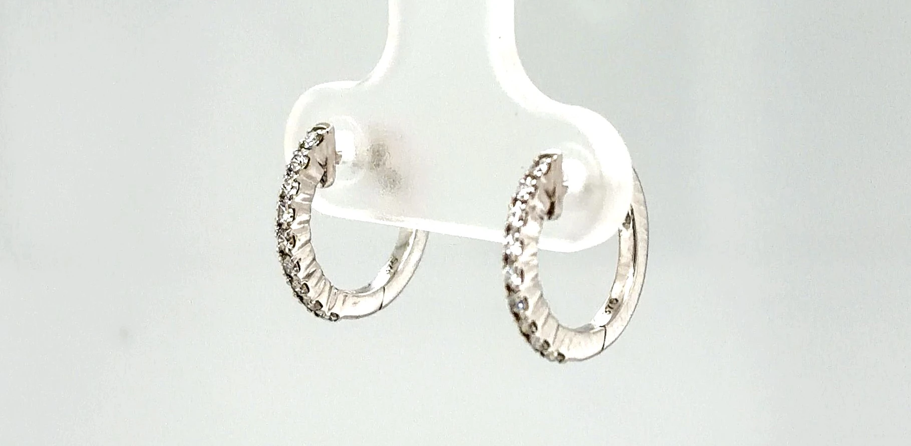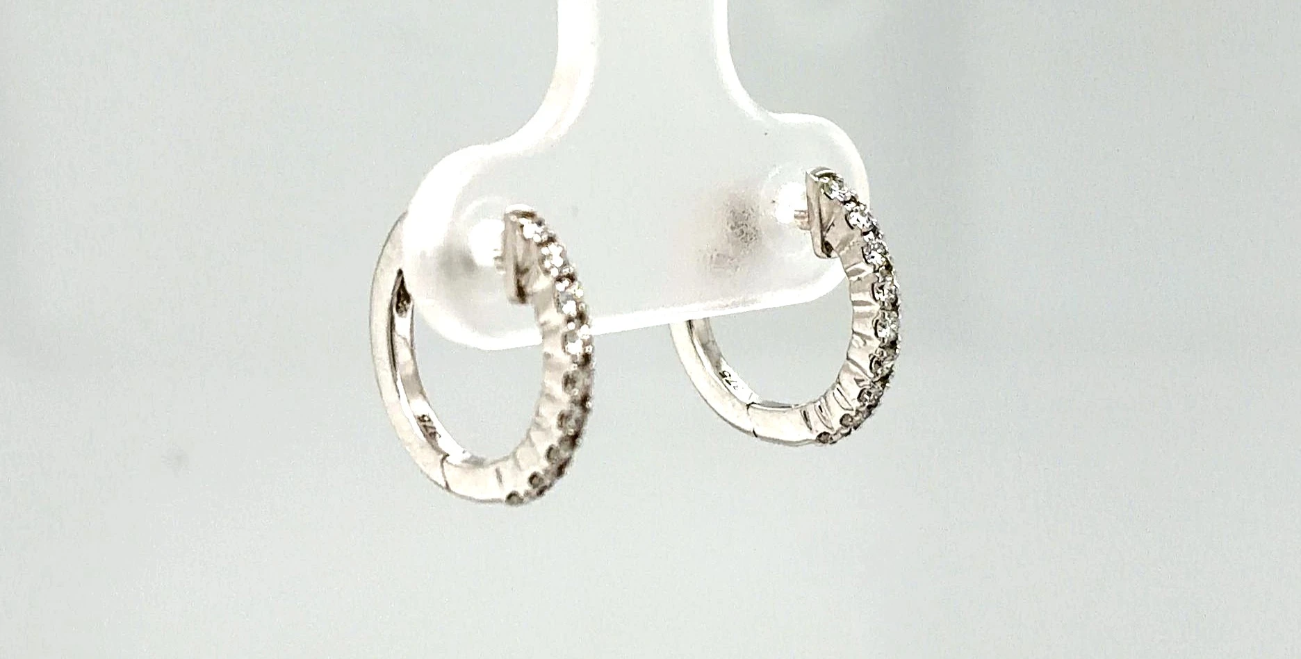 0.17ct Diamond & 9ct White Gold Small Diamond Hoop Earrings – 1.3g Add subtle sparkle to your everyday look with these 0.17ct Diamond Small Hoop Earrings, crafted in 9ct white gold. Featuring brilliant-cut diamonds set along a classic hoop design, these earrings combine elegance with timeless style. Lightweight at 1.3 grams, they are comfortable for all-day wear, making them perfect for both casual and special occasions. Details: