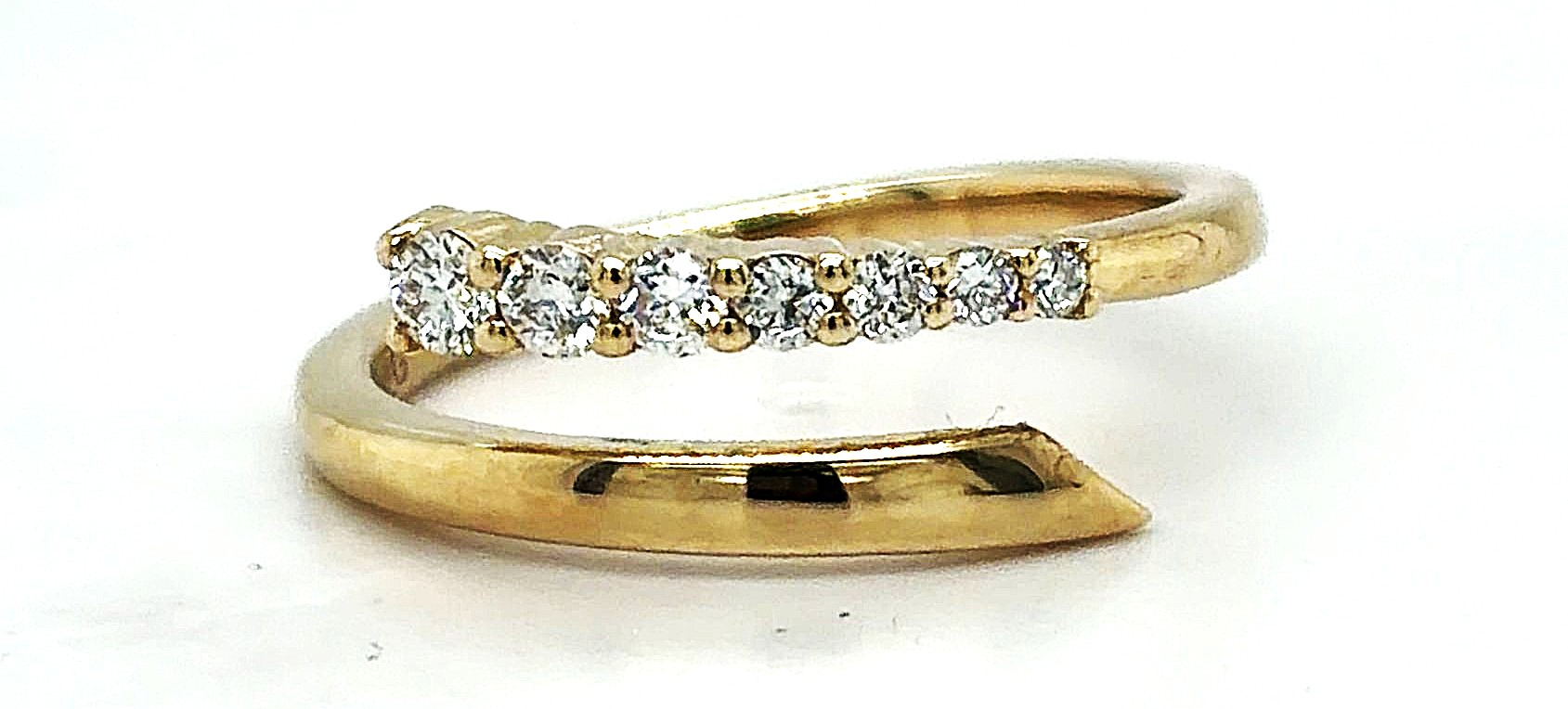 Elegant and contemporary, this cross over ring is crafted in 9ct gold, featuring a total of 0.22 carats of lab grown diamonds that sparkle brilliantly with every movement. The stylish cross over design adds a modern twist to a classic ring, making it a versatile piece for both everyday wear and special occasions. Weighing approximately 2.2 grams, the ring offers a comfortable fit while retaining a sense of quality and substance. Lab grown diamonds provide the same beauty and durability as natural diamonds, while offering a more ethical and sustainable choice. A perfect gift or a stunning addition to any jewellery collection, this 9ct gold lab grown diamond ring combines contemporary design, elegance, and responsible luxury.