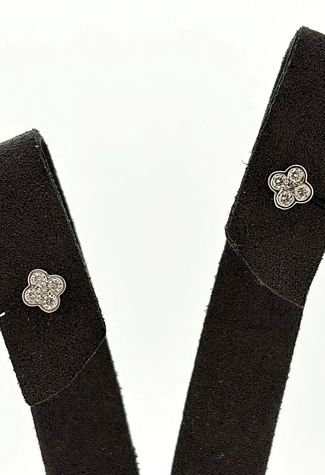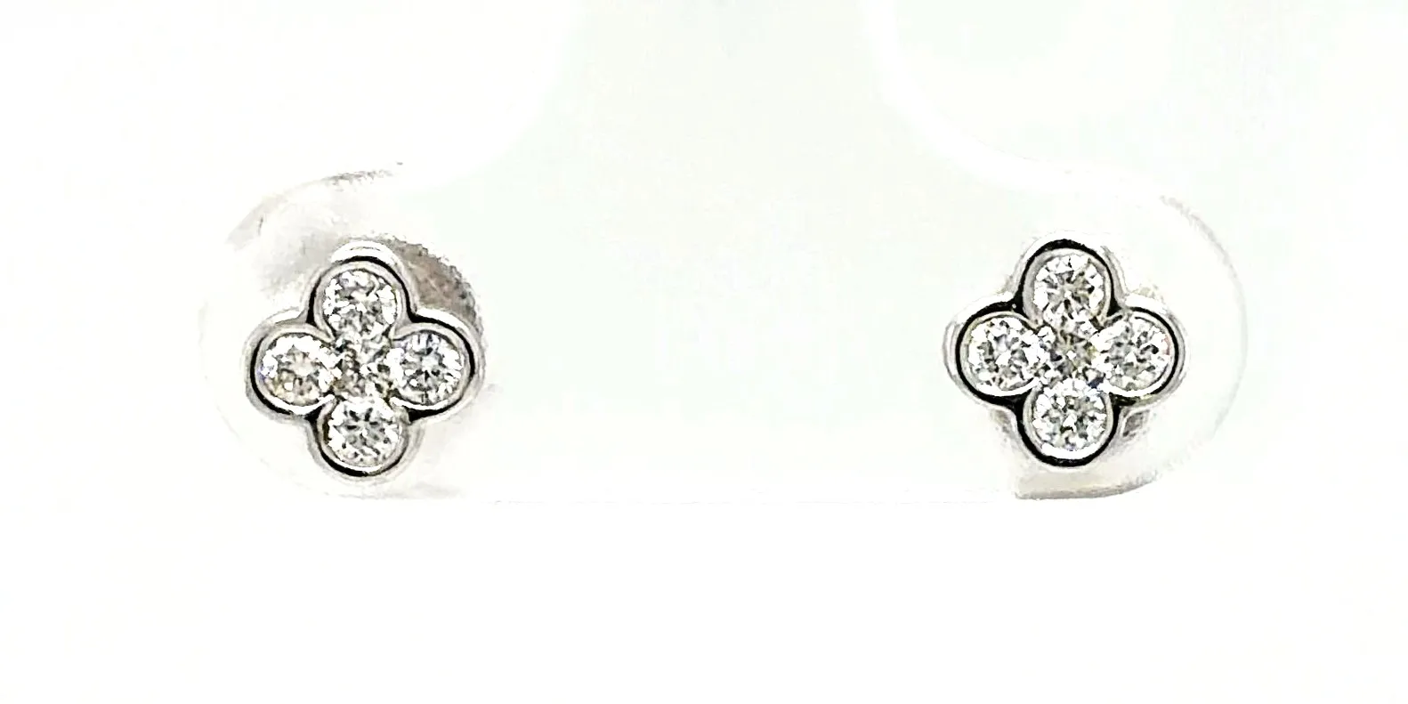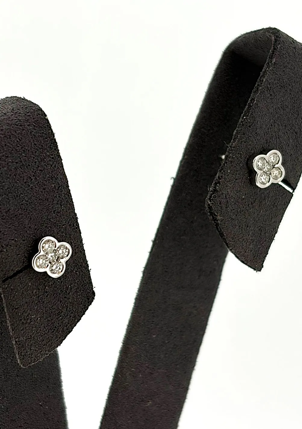 Delicate yet eye-catching, these diamond clover style stud earrings are beautifully crafted in 18ct white gold and set with a total of 0.25 carats of sparkling diamonds. The clover-inspired design adds a touch of charm and symbolism, making them both stylish and meaningful. Made from high-quality 18ct white gold, the earrings weigh 1.0 gram, offering a lightweight and comfortable fit. The diamonds are carefully set to maximise brilliance, making these studs ideal for everyday elegance or special occasions. Perfect as a gift for birthdays, anniversaries, or celebrations, these clover-style diamond studs are a timeless addition to any fine jewellery collection.