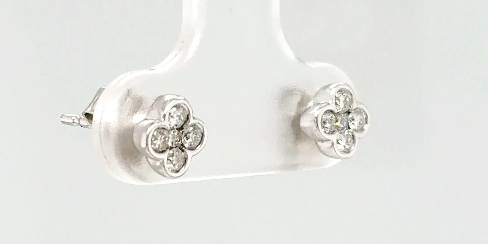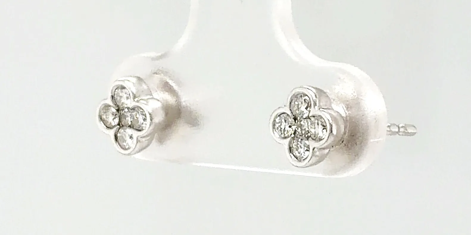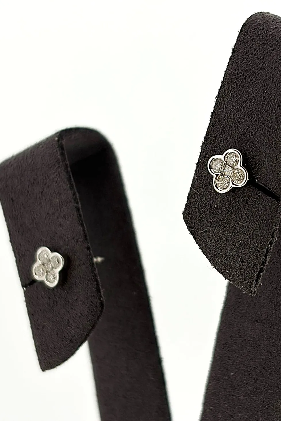 Delicate yet eye-catching, these diamond clover style stud earrings are beautifully crafted in 18ct white gold and set with a total of 0.25 carats of sparkling diamonds. The clover-inspired design adds a touch of charm and symbolism, making them both stylish and meaningful. Made from high-quality 18ct white gold, the earrings weigh 1.0 gram, offering a lightweight and comfortable fit. The diamonds are carefully set to maximise brilliance, making these studs ideal for everyday elegance or special occasions. Perfect as a gift for birthdays, anniversaries, or celebrations, these clover-style diamond studs are a timeless addition to any fine jewellery collection.