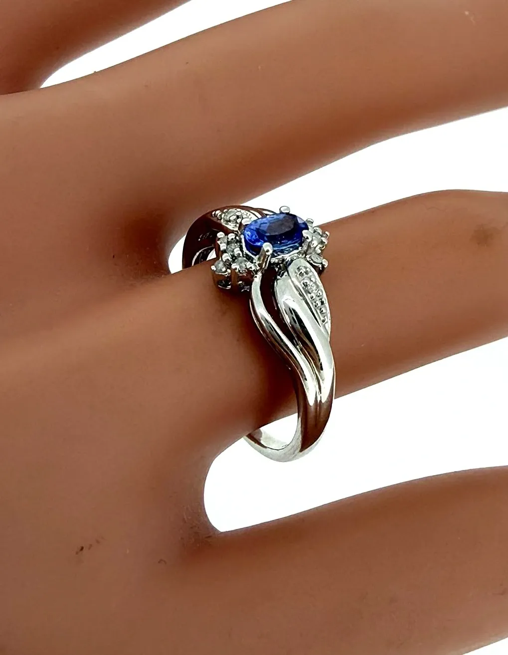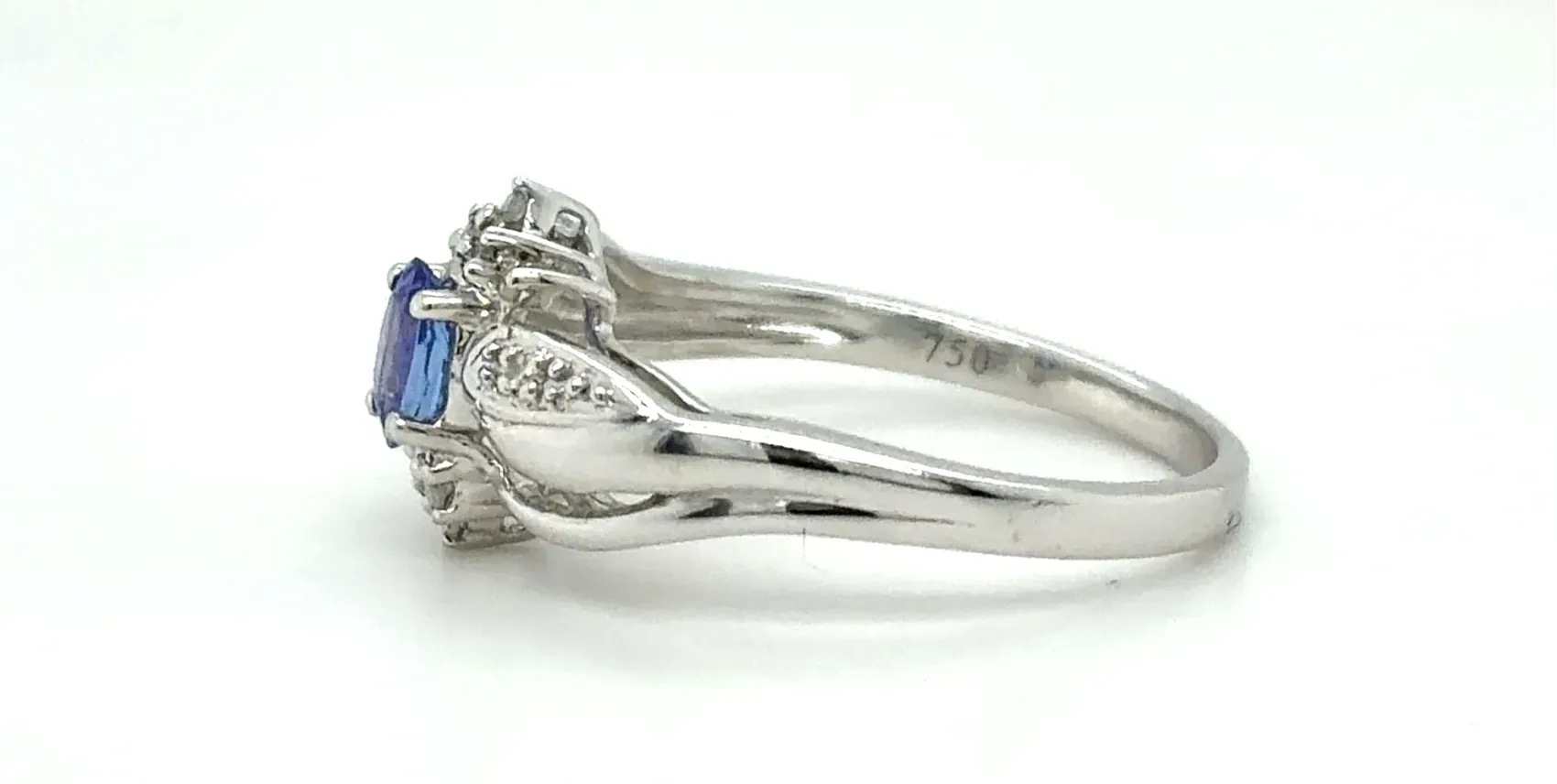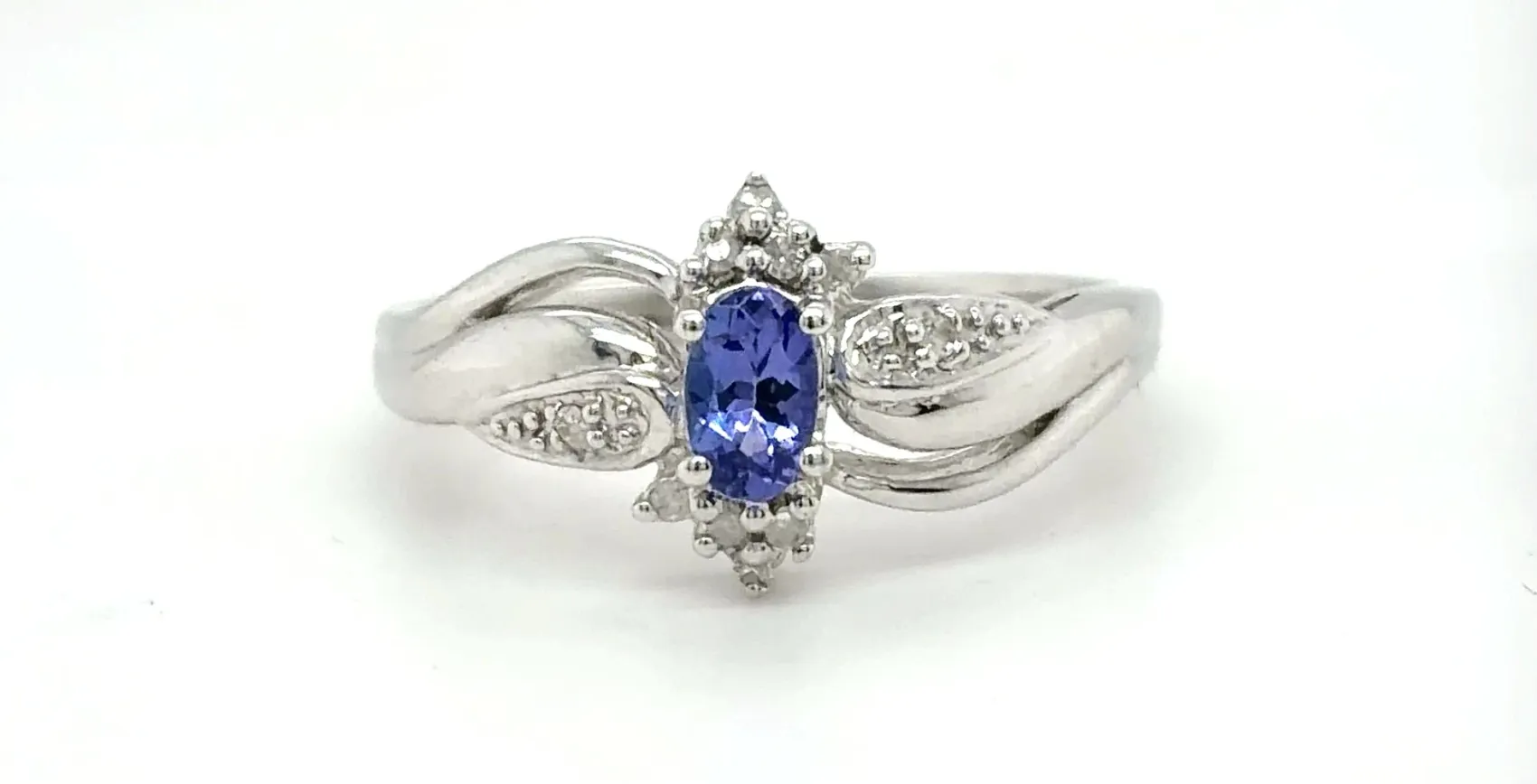 0.25ct Tanzanite & Diamond 18ct White Gold Dress Ring – 3.3g Make a statement with this elegant 0.25ct Tanzanite & Diamond Dress Ring, crafted in 18ct white gold. Featuring a vibrant tanzanite centre stone complemented by sparkling diamonds, this ring exudes sophistication and timeless beauty. Weighing 3.3 grams, it offers a comfortable fit while adding a touch of glamour to any outfit. Perfect for special occasions or as a striking addition to your fine jewellery collection. Details: