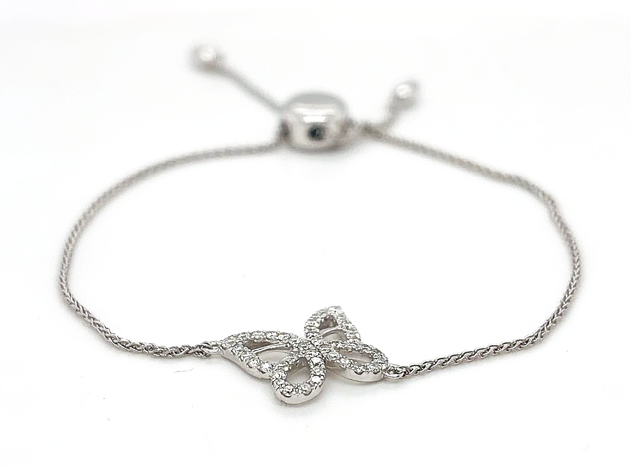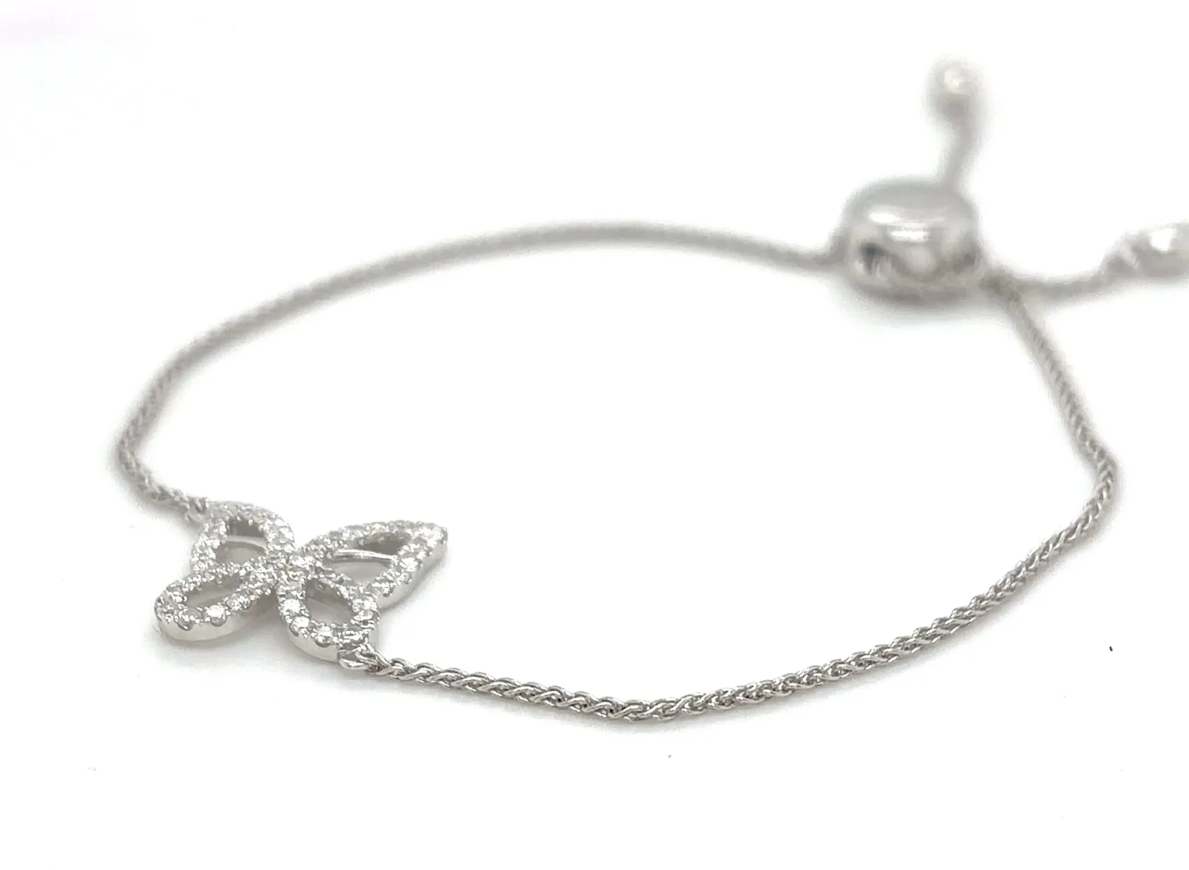 0.30ct Diamond Butterfly Adjustable Bracelet – 7.5 inch, 3.8g Delicate and whimsical, this 0.30ct Diamond Butterfly Bracelet combines elegance with a touch of charm. Crafted with precision, the bracelet features a sparkling diamond-accented butterfly centerpiece, set to catch the light beautifully. Its adjustable 7.5-inch design ensures a perfect fit, making it versatile for any wrist size. Weighing 3.8 grams, this bracelet is ideal for everyday wear or special occasions, offering a graceful and contemporary addition to any jewellery collection. Details:
