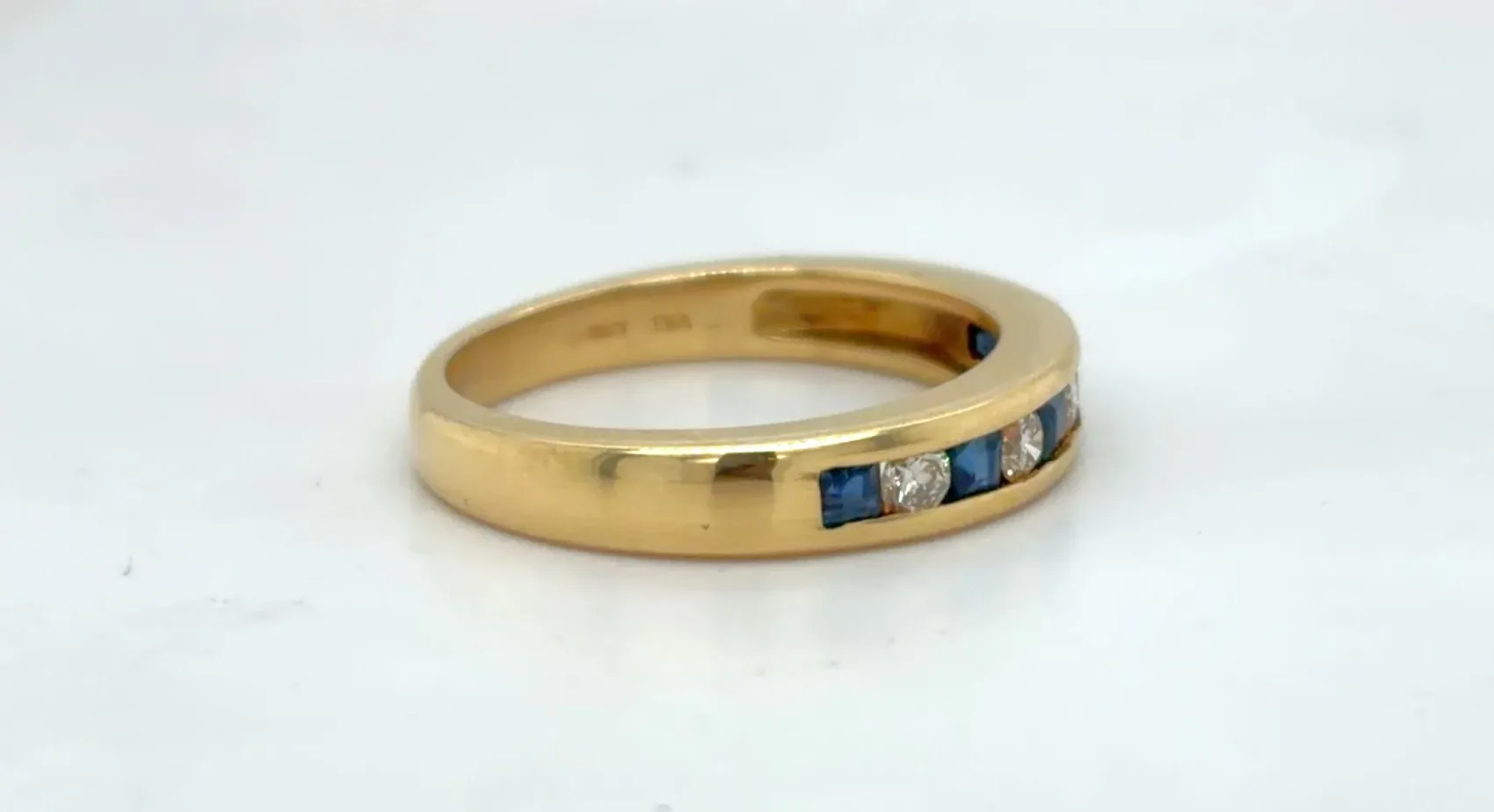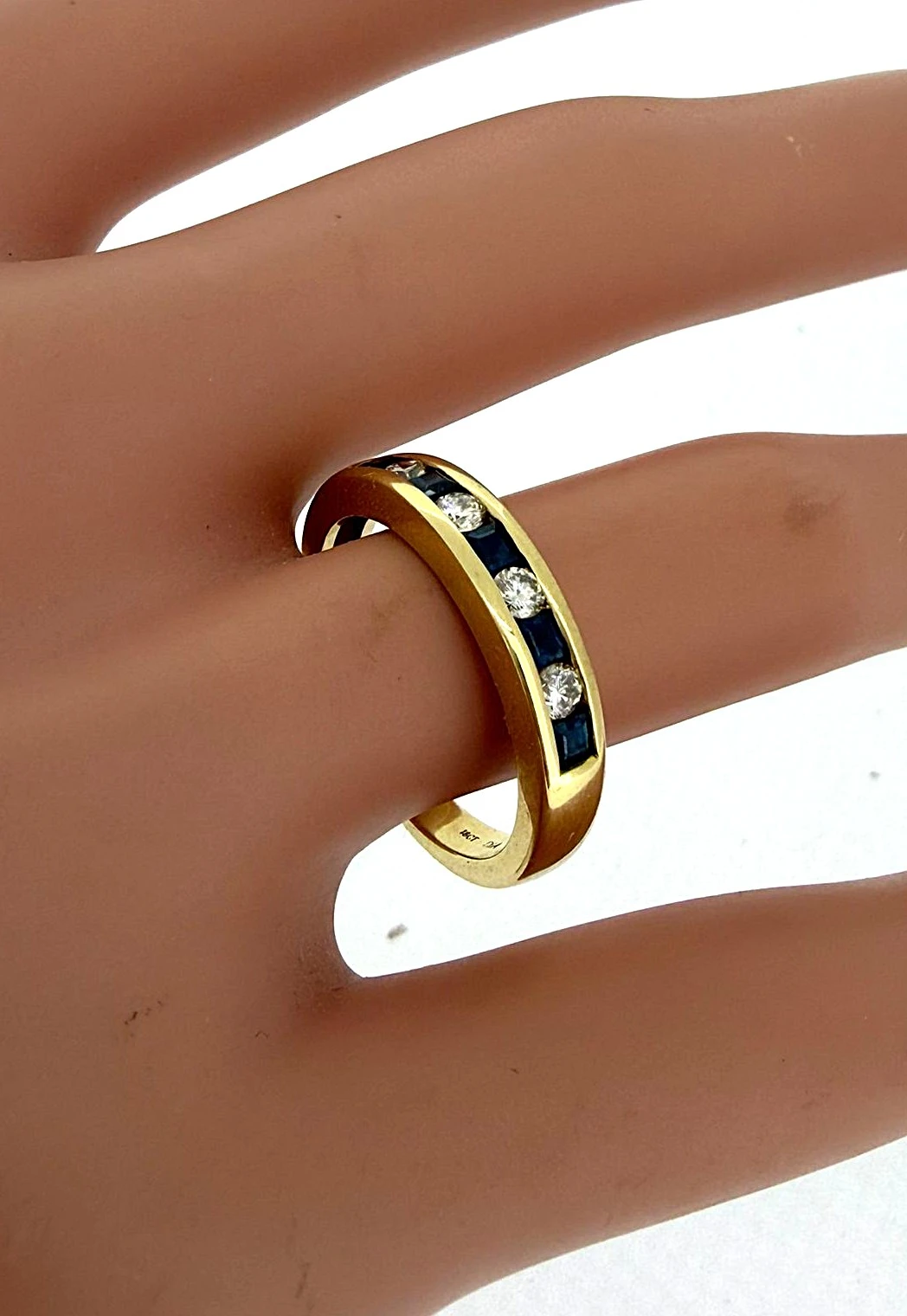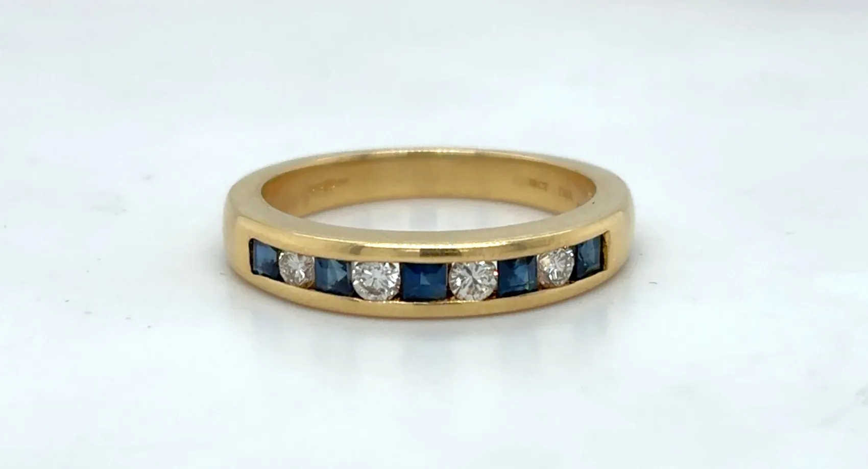 0.30ct Sapphire & 0.25ct Diamond 18ct Gold Eternity/Wedding Band – 4.8g Celebrate love with this 0.30ct Sapphire and 0.25ct Diamond Eternity Band, crafted in 18ct gold. Featuring a sparkling combination of deep blue sapphires and brilliant-cut diamonds, this 4.8g band offers timeless elegance and vibrant colour, perfect for marking a special occasion. Designed as a 3.5–4mm band (approx.), it works beautifully as a wedding ring, anniversary band, or stacking piece, combining luxury, comfort, and enduring style. Details: