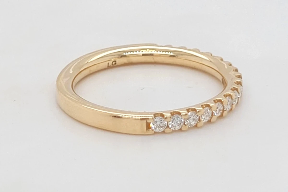 Refined 0.33ct Lab Grown Diamond & 9ct Gold Wedding/Eternity Band. Crafted, in polished 9ct Gold and weighing 2.2g, this elegant band features a sparkling row of ethically sourced Lab Grown Diamonds.