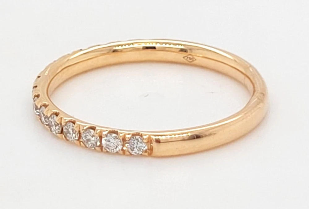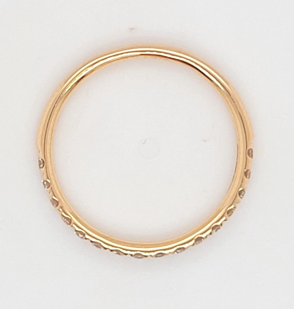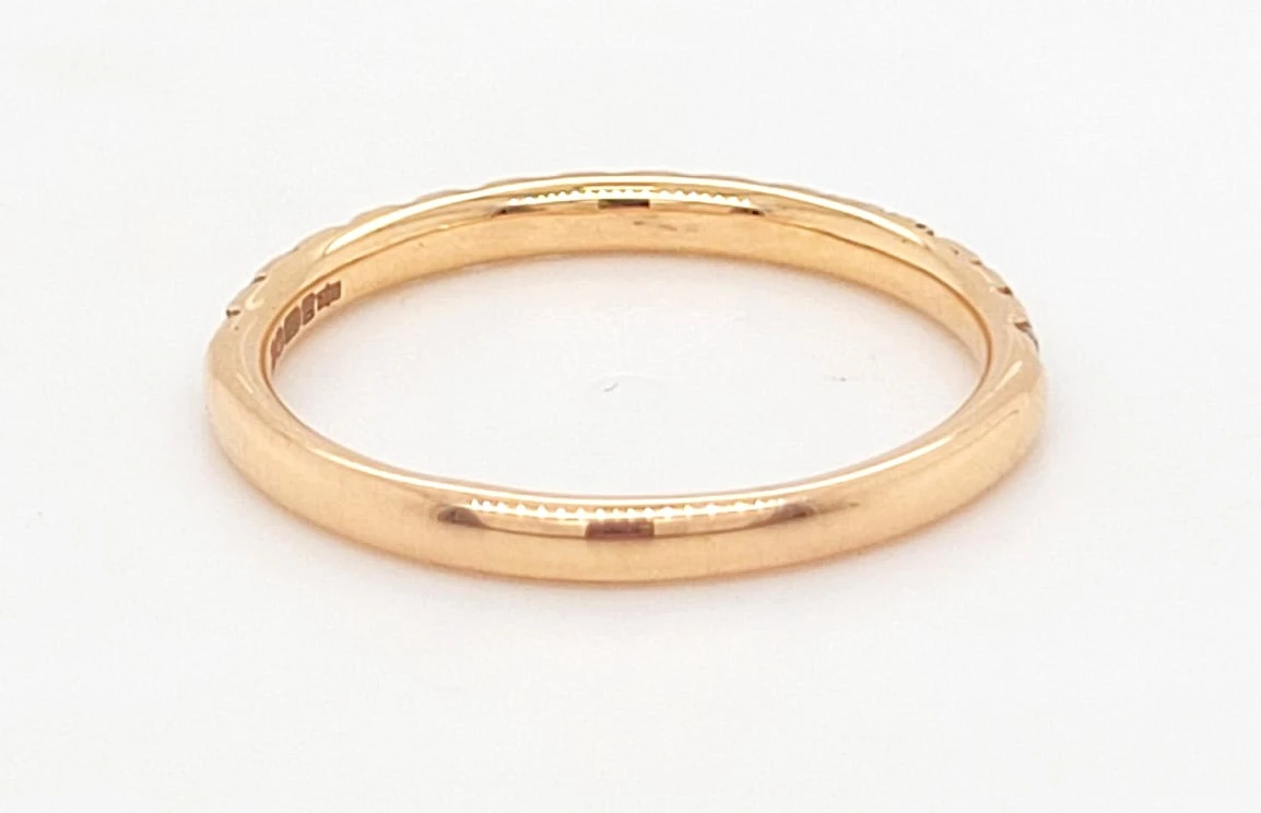 0.34ct Diamond & 18ct Rose Gold Wedding/Eternity Ring – 1.7g Celebrate love with this delicate and enchanting 0.34ct diamond eternity ring, beautifully crafted in warm 18ct rose gold. Weighing a light 1.7 grams, this elegant band offers a subtle yet radiant sparkle—perfect for those who appreciate understated luxury. The ring features expertly set brilliant-cut diamonds that gently encircle the band, symbolising an eternal bond and everlasting commitment. The soft pink hue of the rose gold complements the diamonds’ fire, creating a romantic and timeless piece. Ideal as a wedding band, anniversary ring, or a meaningful gift, this lightweight design promises comfortable everyday wear without compromising on style. Specifications: