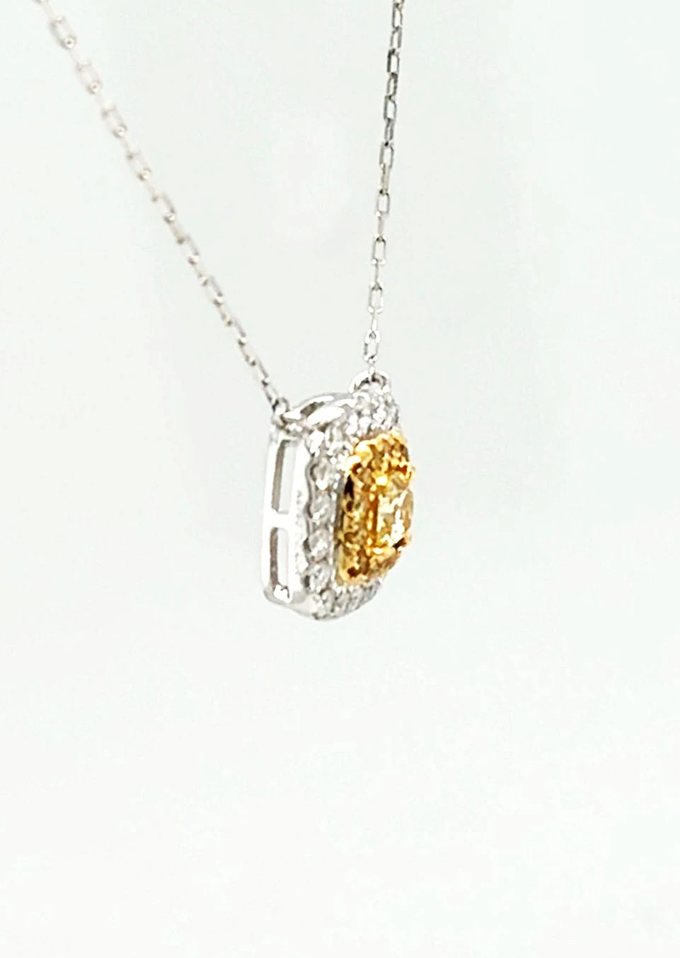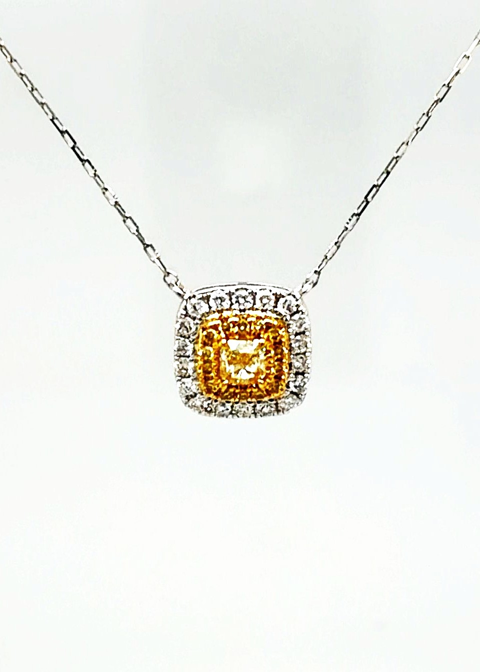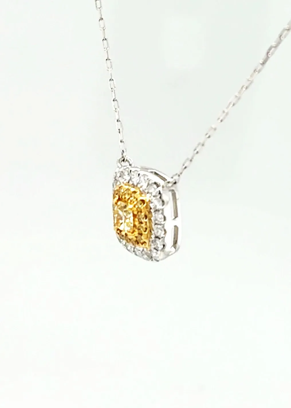 Add a touch of vibrant elegance with this 0.40ct yellow and white diamond pendant, set in luxurious 18ct white gold. Featuring a harmonious combination of yellow and white diamonds, this pendant sparkles with a unique, eye-catching brilliance. Suspended from a 16-inch white gold chain and weighing 1.8g, it offers lightweight comfort while showcasing timeless sophistication. Perfect for both everyday wear and special occasions, this pendant is a striking addition to any fine jewellery collection, blending classic design with contemporary sparkle.