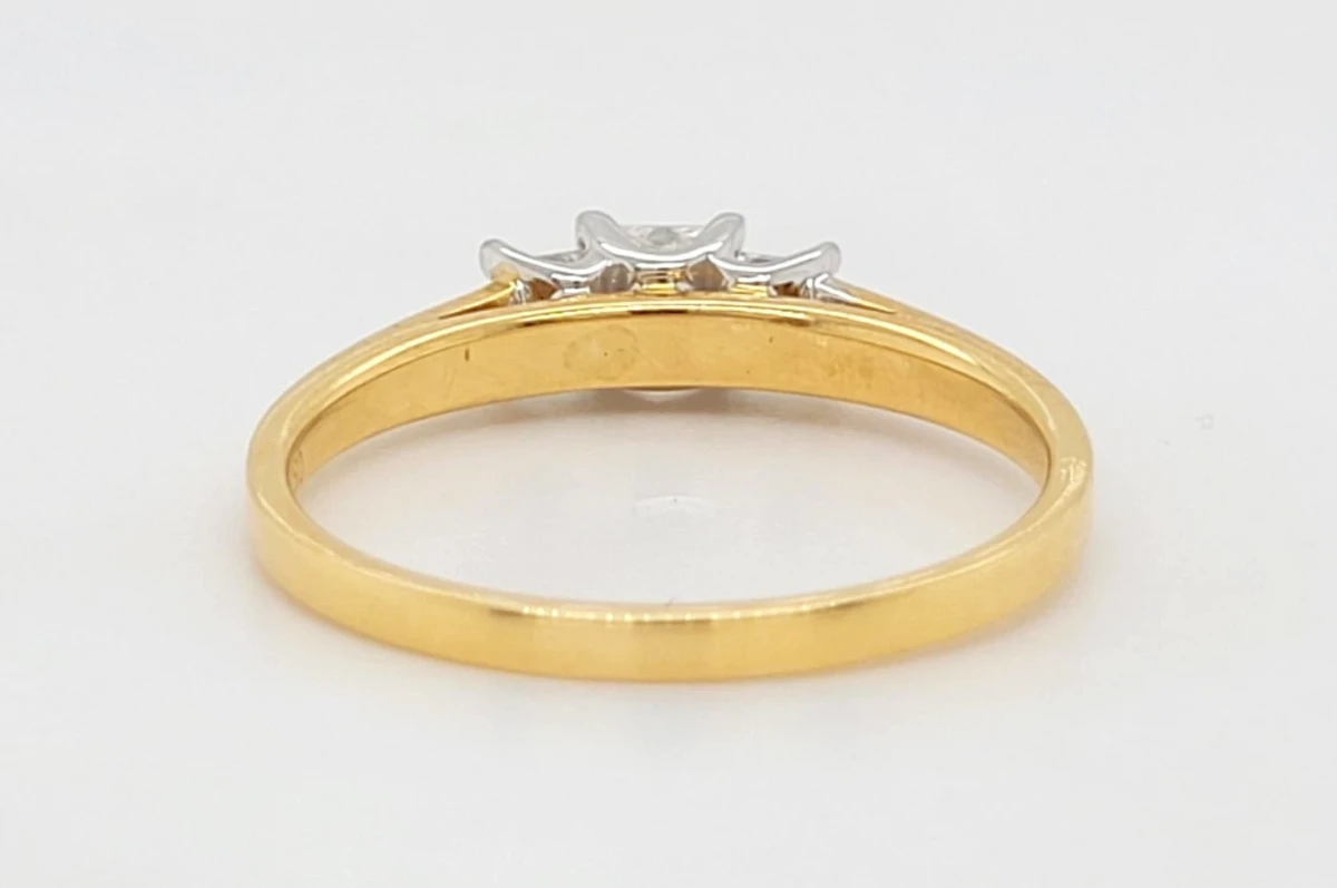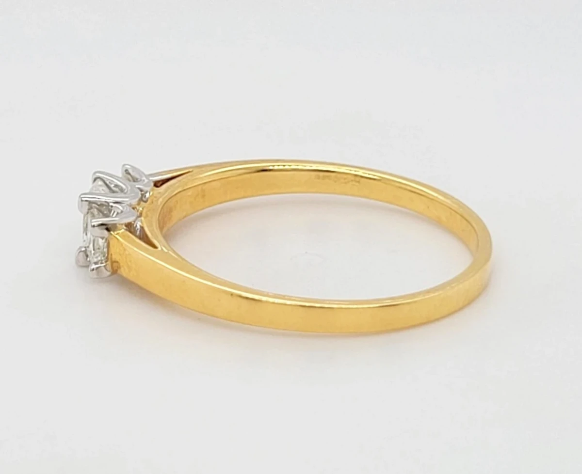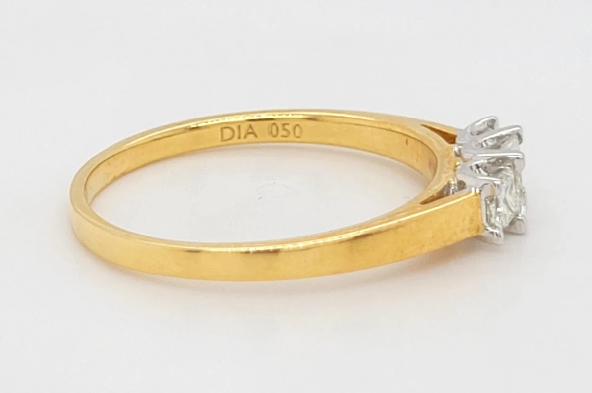 0.50ct Diamond & 18ct Gold Trilogy Ring – Size P (2.9g) Celebrate cherished moments with this elegant 0.50ct diamond trilogy ring, beautifully crafted in rich 18ct gold. Featuring three dazzling diamonds symbolising the past, present, and future, this classic design offers timeless elegance and meaningful symbolism. Weighing 2.9 grams and sized at P, the warm gold band perfectly complements the sparkling diamonds, making it an ideal choice for engagements, anniversaries, or as a thoughtful gift.