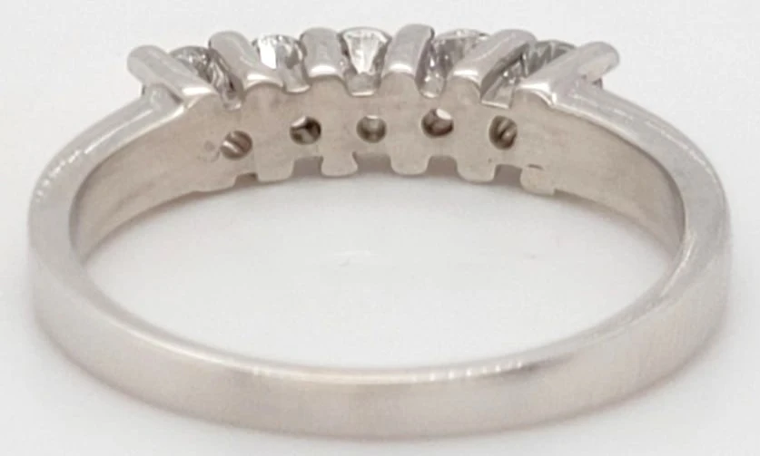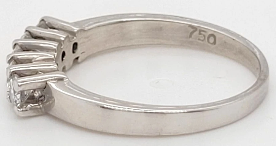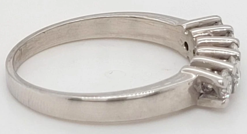0.50ct Diamond & 18ct White Gold 5-Stone Eternity Ring – 3.3g Classic elegance meets modern brilliance in this 0.50ct diamond 5-stone eternity ring, expertly crafted in timeless 18ct white gold. With a refined weight of 3.3 grams, this ring offers a luxurious yet comfortable feel, perfect for daily wear or marking a special occasion. Set with five brilliant-cut diamonds totalling 0.50 carats, each stone is hand-selected for exceptional clarity and sparkle. The evenly spaced diamonds represent key milestones in a journey of love, making this ring an ideal choice for an anniversary, wedding band, or sentimental gift. The sleek white gold band enhances the diamonds’ natural radiance, creating a sophisticated and enduring symbol of commitment. Specifications: