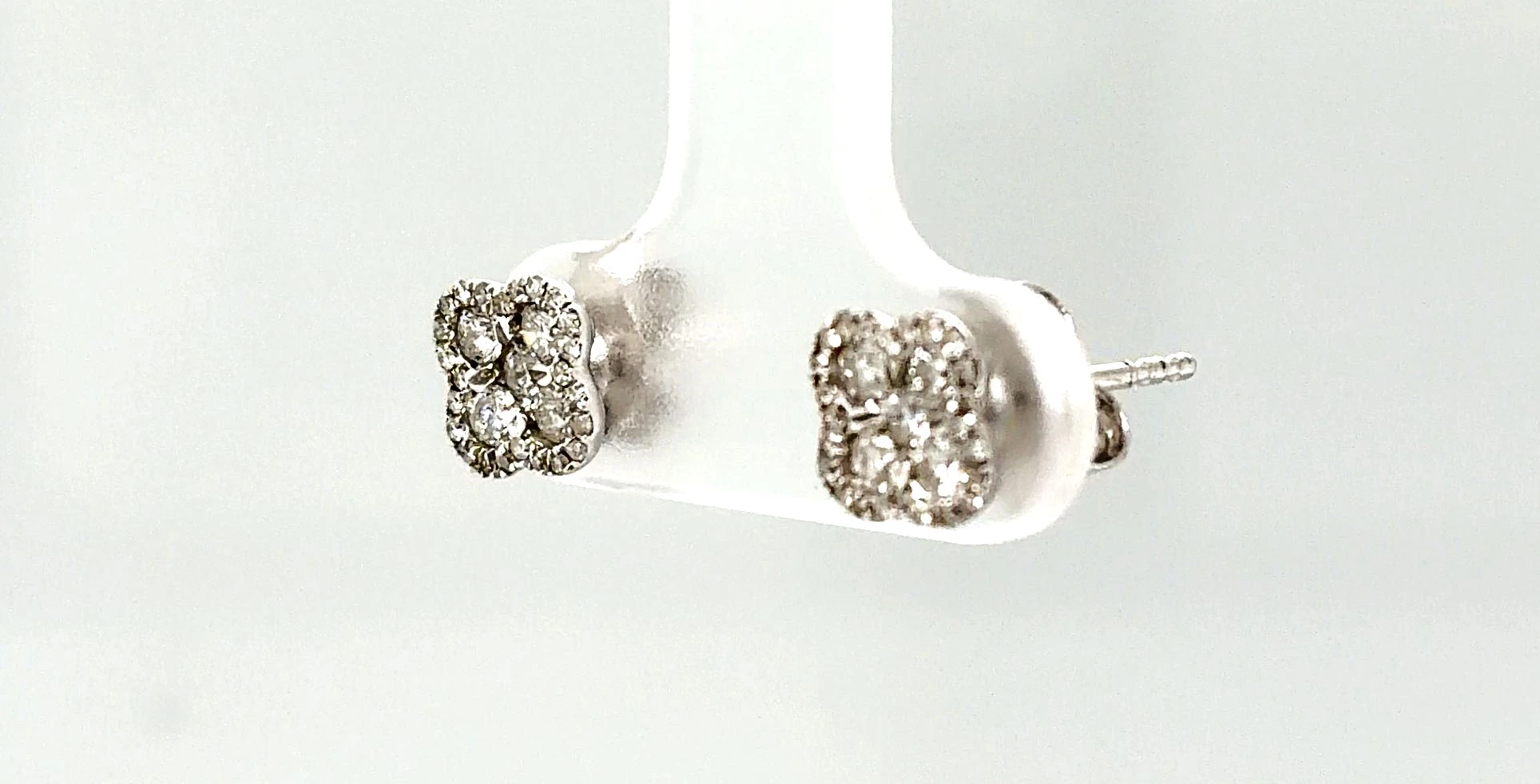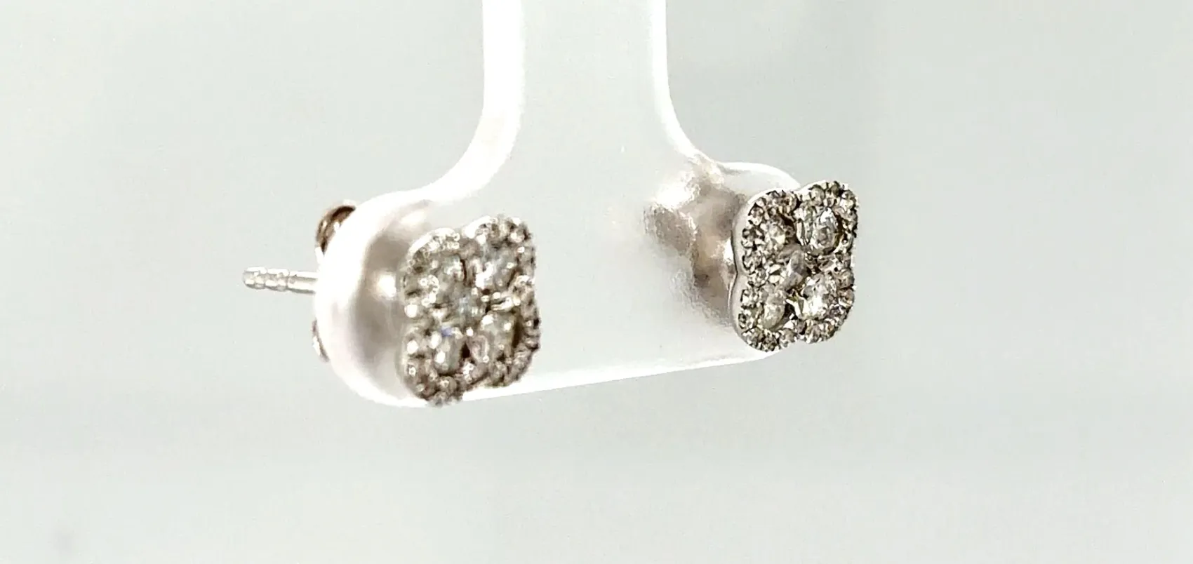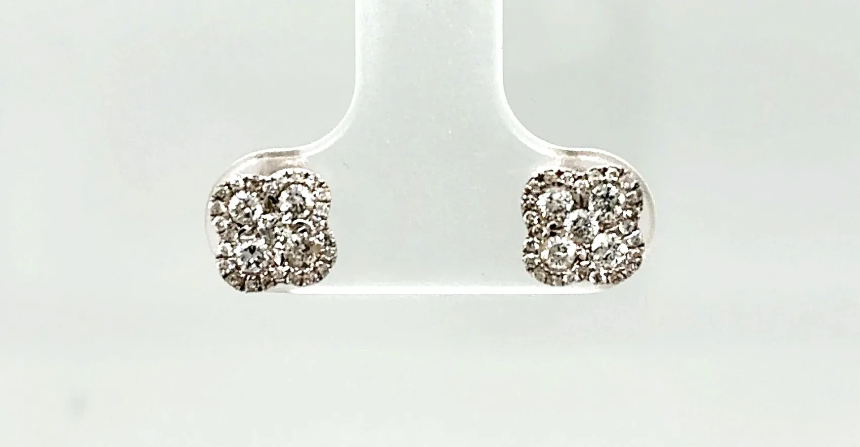 0.50ct Diamond & 18ct White Gold Clover Stud Earrings – 1.6g Add a touch of luck and elegance with these 0.50ct Diamond Clover Stud Earrings, beautifully crafted in 18ct white gold. The charming clover design is accented with brilliant-cut diamonds, creating a delicate sparkle that captures the light from every angle. Lightweight at 1.6 grams, these earrings are perfect for daily wear or special occasions, combining timeless style with a playful, sophisticated design. Details: