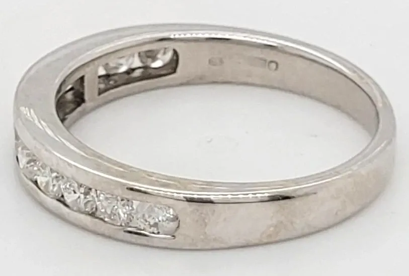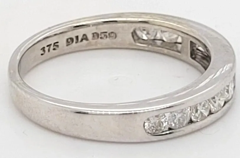 0.50ct Diamond & 9ct White Gold Wedding/Eternity Band – 2.4g Celebrate your everlasting love with this stunning 0.50ct diamond eternity band, expertly crafted in radiant 9ct white gold. Weighing a comfortable 2.4 grams, this elegant band offers a perfect balance of sparkle and subtle sophistication. The ring is adorned with brilliant-cut diamonds, carefully set to create a continuous circle of dazzling light that symbolises eternal commitment. The sleek white gold setting enhances the diamonds’ brilliance, making this band a beautiful choice for a wedding ring, anniversary gift, or stacking piece. Its timeless design ensures versatility, allowing it to be worn alone or paired effortlessly with an engagement ring. Specifications: