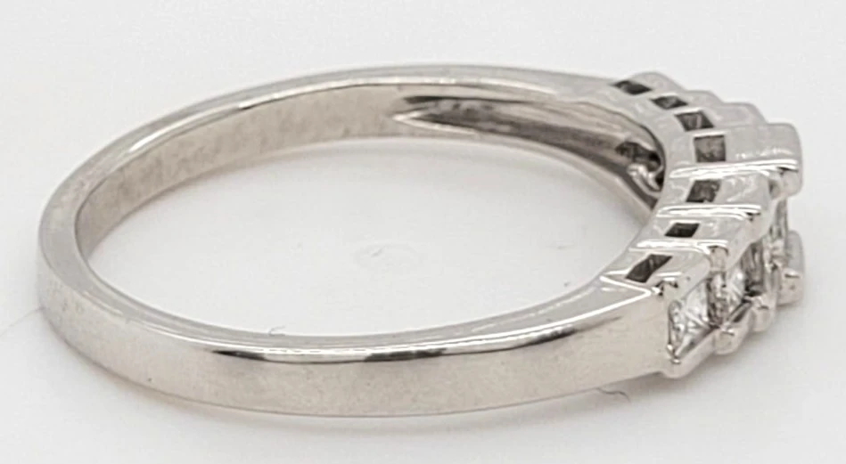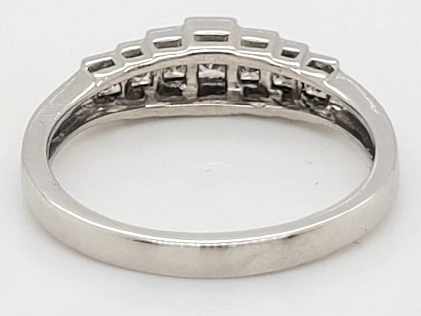0.50ct Diamond & Platinum Graduating 7 Stone Eternity Ring – 3.9g Experience timeless elegance with this stunning 0.50ct diamond platinum eternity ring, featuring a graduating design of seven brilliant-cut diamonds. Weighing 3.9 grams, this ring beautifully combines classic sophistication with modern style. Each diamond is carefully selected and set to gradually increase in size towards the centre, creating a captivating sparkle and a balanced aesthetic. Crafted in durable platinum, this eternity band offers lasting shine and strength, perfect for everyday wear or special occasions. An exquisite choice for a wedding band, anniversary gift, or a statement piece in your jewellery collection. Specifications: