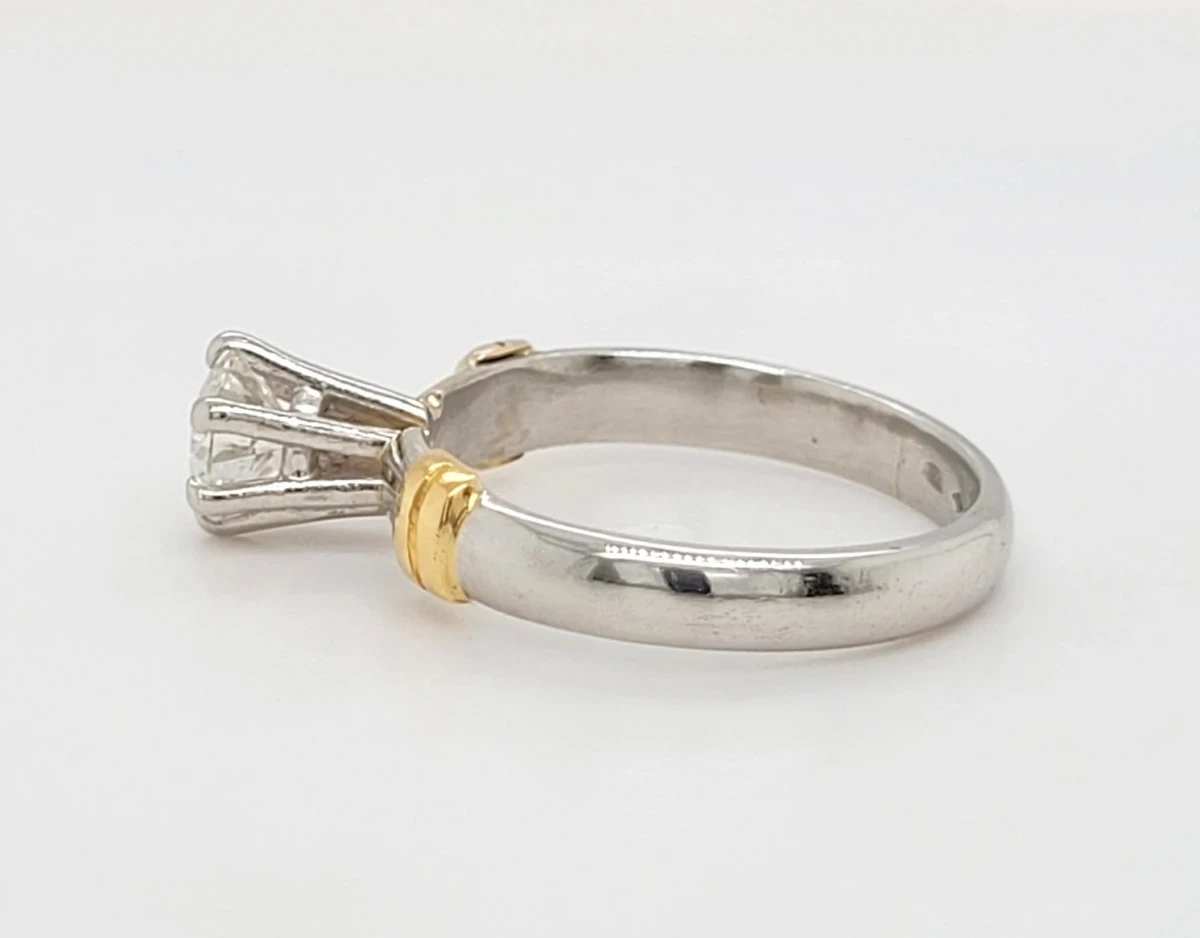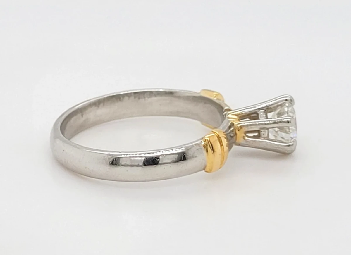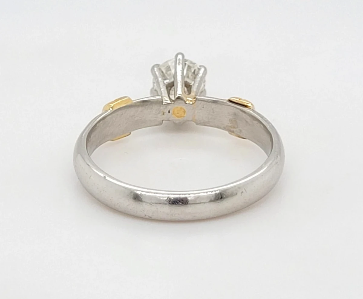 0.50ct Diamond & Platinum/18ct Gold Solitaire Ring – Size J½ (4.4g) Showcase timeless elegance with this exquisite 0.50ct diamond solitaire ring, beautifully crafted with a durable platinum setting and a luxurious 18ct gold band. This classic design features a brilliant-cut diamond that captures light from every angle, offering stunning sparkle and sophistication. Weighing 4.4 grams and sized at J½, the ring blends the strength of platinum with the warmth of 18ct gold, creating a perfect balance of durability and beauty. Ideal for engagements, anniversaries, or as a refined statement piece, this solitaire ring is designed to be treasured forever.