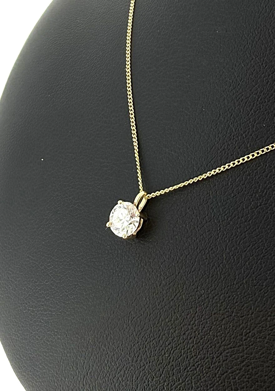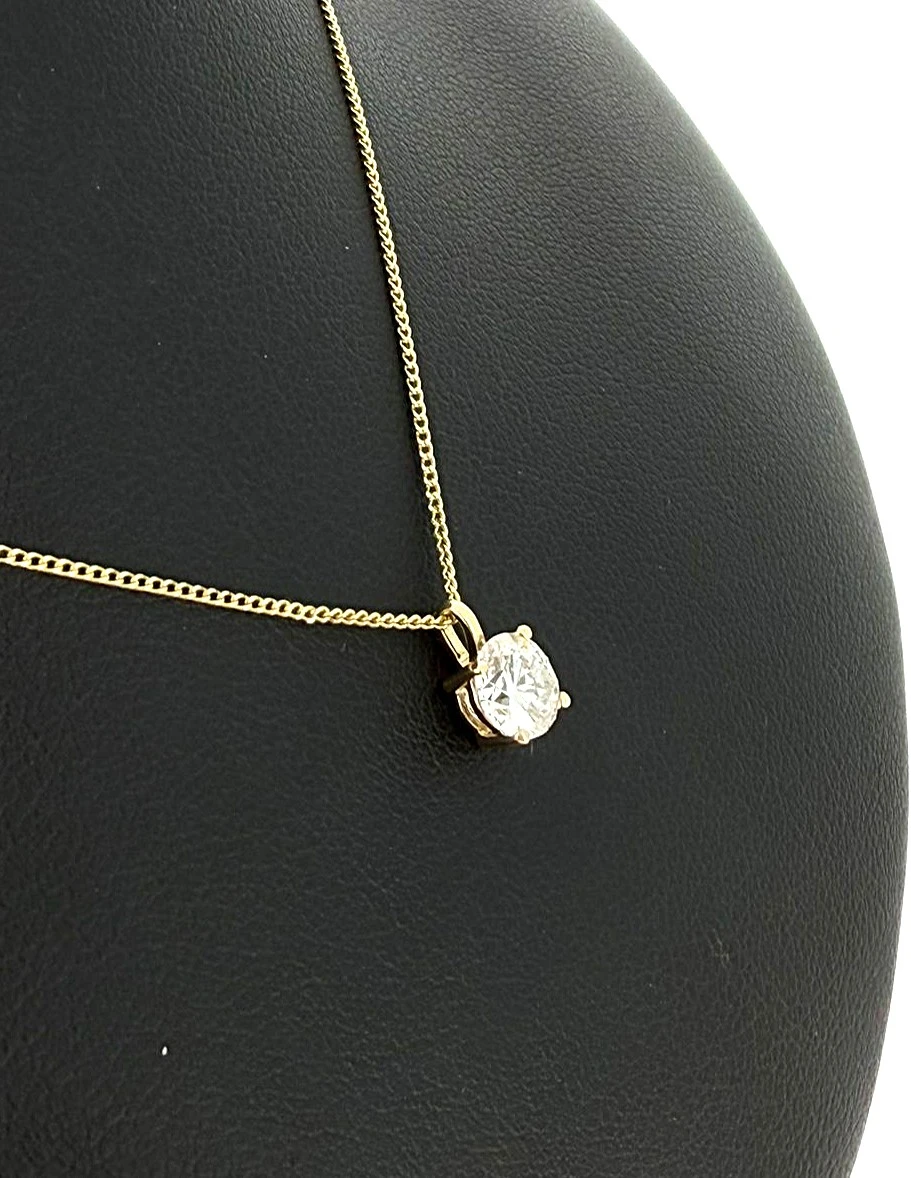 Add a touch of timeless elegance with this lab-grown diamond solitaire pendant. Featuring a 0.50ct brilliant-cut diamond, ethically created to deliver exceptional sparkle and clarity, this pendant combines luxury with sustainability. Set in 9ct gold, the classic four-claw design ensures the diamond is the focal point while providing secure wear. The 18-inch chain offers a versatile length, perfect for layering or wearing alone as a statement piece. Ideal for gifting or elevating your everyday jewellery collection, this pendant offers refined sophistication and enduring beauty. Features: