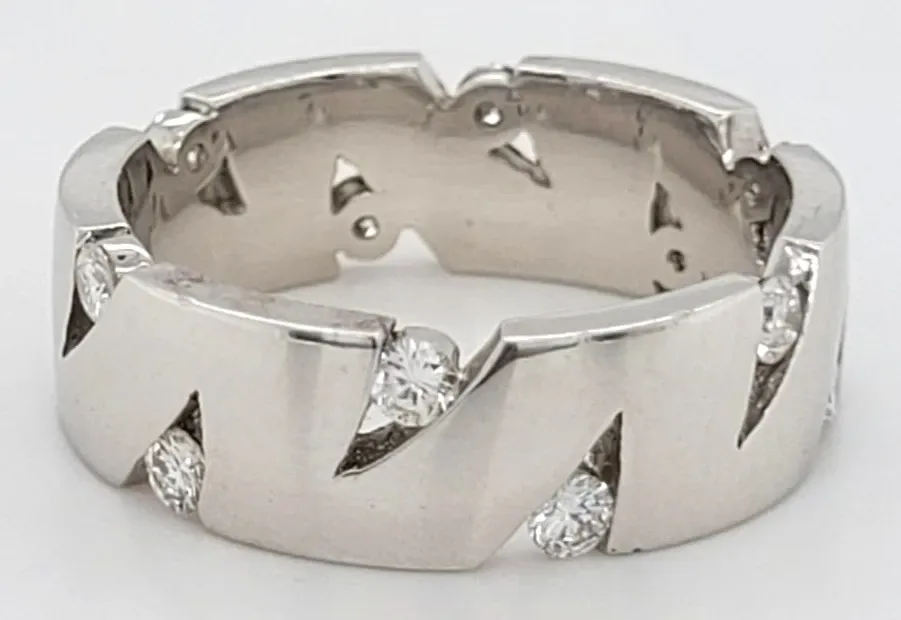 0.50ct Natural Diamond & Platinum Fancy Wedding Band – 9.0g Crafted for those who seek elegance with a distinctive twist, this 0.50ct natural diamond wedding band is set in premium platinum, offering both lasting strength and timeless luxury. Weighing a substantial 9.0 grams, the ring features a fancy design accented with brilliant-cut diamonds, delivering sparkle with a bold, modern edge. Whether worn as a wedding band, eternity ring, or statement piece, its intricate detailing and solid platinum construction make it a standout symbol of enduring love and individuality.