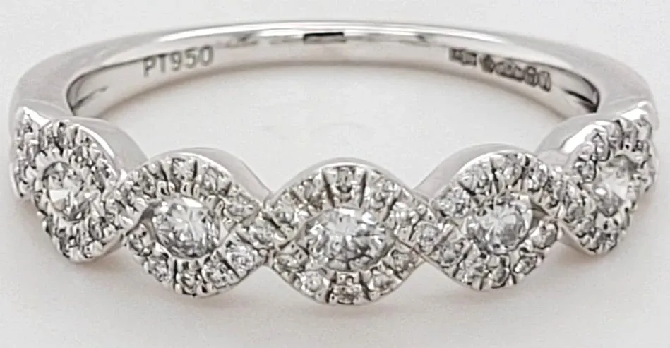 0.65ct Diamond & Platinum Halo Wedding / Eternity Ring – 4.1g Radiate timeless elegance with this stunning 0.65ct diamond halo wedding or eternity ring, beautifully crafted in durable and luxurious platinum. Weighing 4.1 grams, this exquisite ring features a dazzling central cluster of brilliant-cut diamonds surrounded by a sparkling halo, enhancing the overall brilliance and creating a captivating effect. Perfect for weddings, anniversaries, or as a statement eternity band, this ring blends classic design with modern sophistication. Its intricate halo setting adds extra fire and depth, making it a treasured symbol of everlasting love.