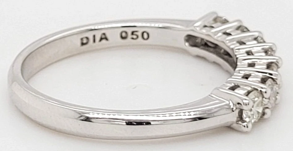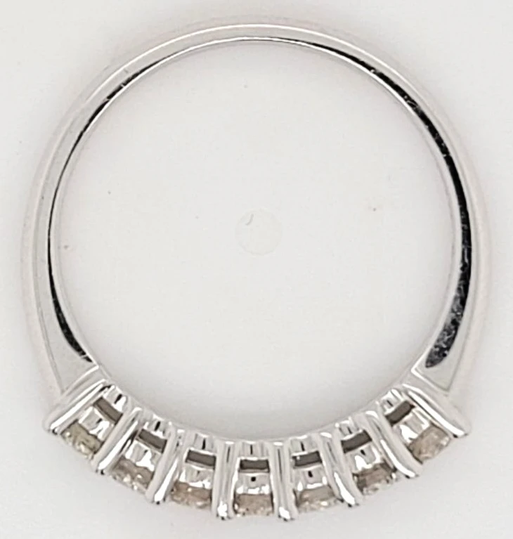 0.70ct Diamond & 18ct White Gold 7-Stone Eternity Ring – 3.1g Celebrate everlasting love with this stunning 0.70ct diamond 7-stone eternity ring, crafted in elegant 18ct white gold. Weighing a comfortable 3.1 grams, this exquisite ring perfectly balances sparkle and wearability for daily elegance. Featuring seven brilliant-cut diamonds evenly spaced around the band, this ring symbolises milestones in your journey together. The sleek white gold setting enhances each diamond’s brilliance, creating a timeless piece ideal for weddings, anniversaries, or special occasions. Specifications: