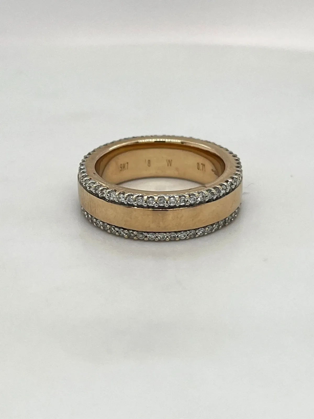 Celebrate everlasting love with this exquisite diamond wedding band, masterfully crafted in solid 9ct gold. Weighing a substantial 9.8 grams, this band offers both durability and timeless elegance. The 6.5mm width provides a bold yet refined profile, while a full circle of meticulously set round brilliant-cut diamonds, totalling 0.71 carats, ensures a radiant sparkle from every angle. Each diamond has been carefully chosen for its brilliance, creating a continuous band of light that symbolises eternal commitment. Perfect as a wedding ring, anniversary band, or a statement piece of fine jewellery, this design blends luxurious weight with classic sophistication—making it a lasting treasure for a lifetime of memories.