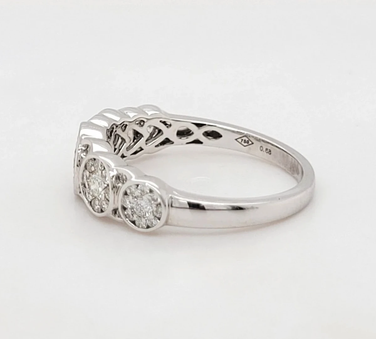 Beautifully crafted in luxurious 18ct white gold, this elegant eternity ring features a dazzling 0.71 carat total weight of brilliant-cut diamonds in a timeless cluster setting. Weighing 3.5 grams, it’s the perfect symbol of everlasting love or a refined addition to any fine jewellery collection.