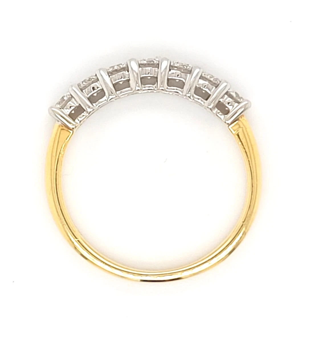 0.75ct Diamond & 18ct Gold 7 Stone Eternity Ring – 3.1g Celebrate timeless elegance with this exquisite 0.75ct diamond eternity ring crafted in luxurious 18ct gold. Featuring seven brilliant-cut diamonds arranged in a graduated design, this 3.1g band offers a perfect blend of sparkle and sophistication. The warm glow of 18ct gold beautifully complements each diamond, while the carefully graduated stones create a stunning visual effect. Ideal as a wedding band, anniversary gift, or a striking addition to your jewellery collection. Specifications: