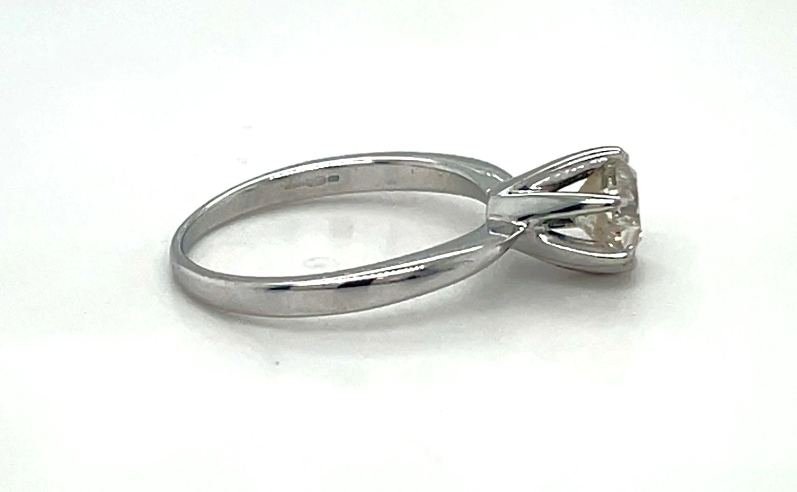 0.75ct Diamond & 18ct White Gold 6-Claw Solitaire Ring (3.2g) Showcasing timeless elegance, this solitaire ring is crafted in 18ct white gold and features a brilliant 0.75 carat diamond securely set in a classic 6-claw setting. The design maximises the diamond’s sparkle and brilliance, allowing it to capture the light from every angle. Weighing 3.2 grams, this lightweight yet substantial ring offers both comfort and sophistication for everyday wear or special occasions. Perfect as an engagement ring or a treasured gift, this 6-claw solitaire exudes enduring style and understated luxury.