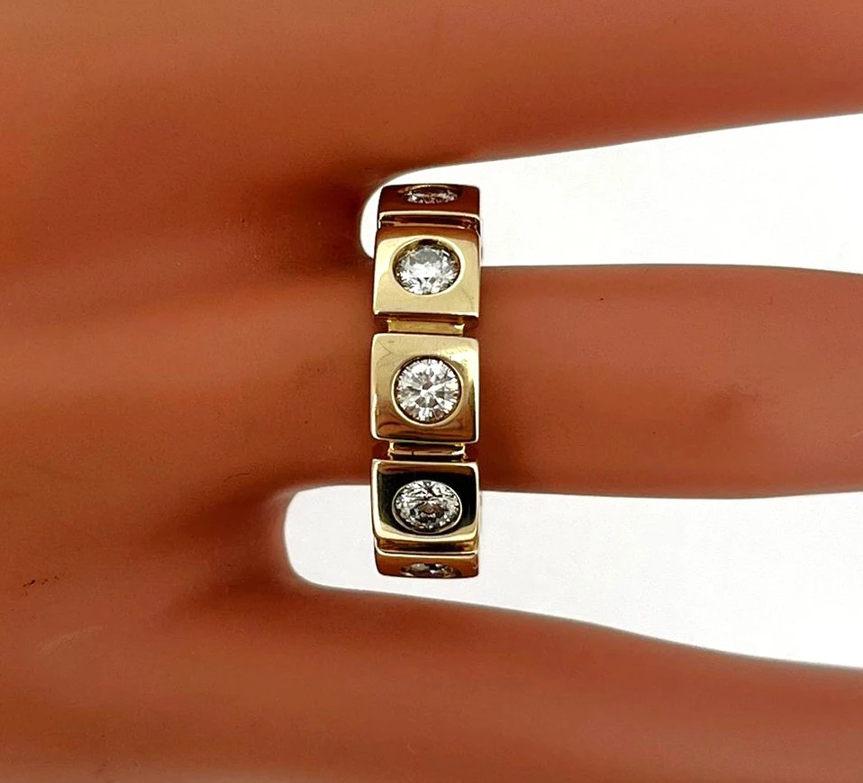 0.75ct Diamond & 9ct Rose Gold 6mm Section Band – 9.2g Exuding elegance and sophistication, this 6mm section band is crafted in warm 9ct rose gold and set with a total of 0.75ct sparkling diamonds. The sectioned design adds a modern twist to a classic band, catching the light beautifully from every angle. Weighing 9.2 grams, this substantial band offers a comfortable yet prominent presence on the finger. The polished rose gold finish enhances the brilliance of the diamonds, making this ring a stunning statement piece suitable for weddings, anniversaries, or special occasions. Details: