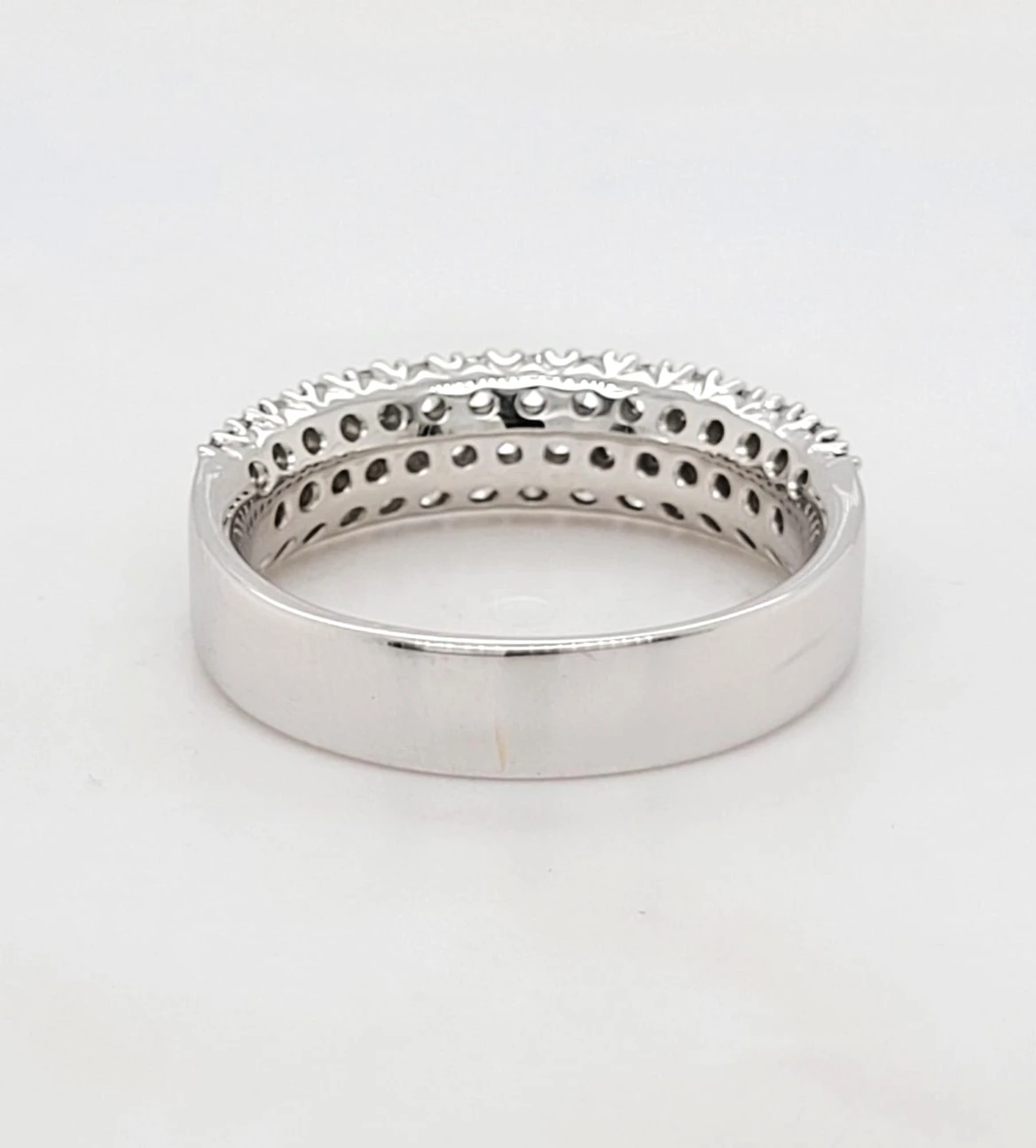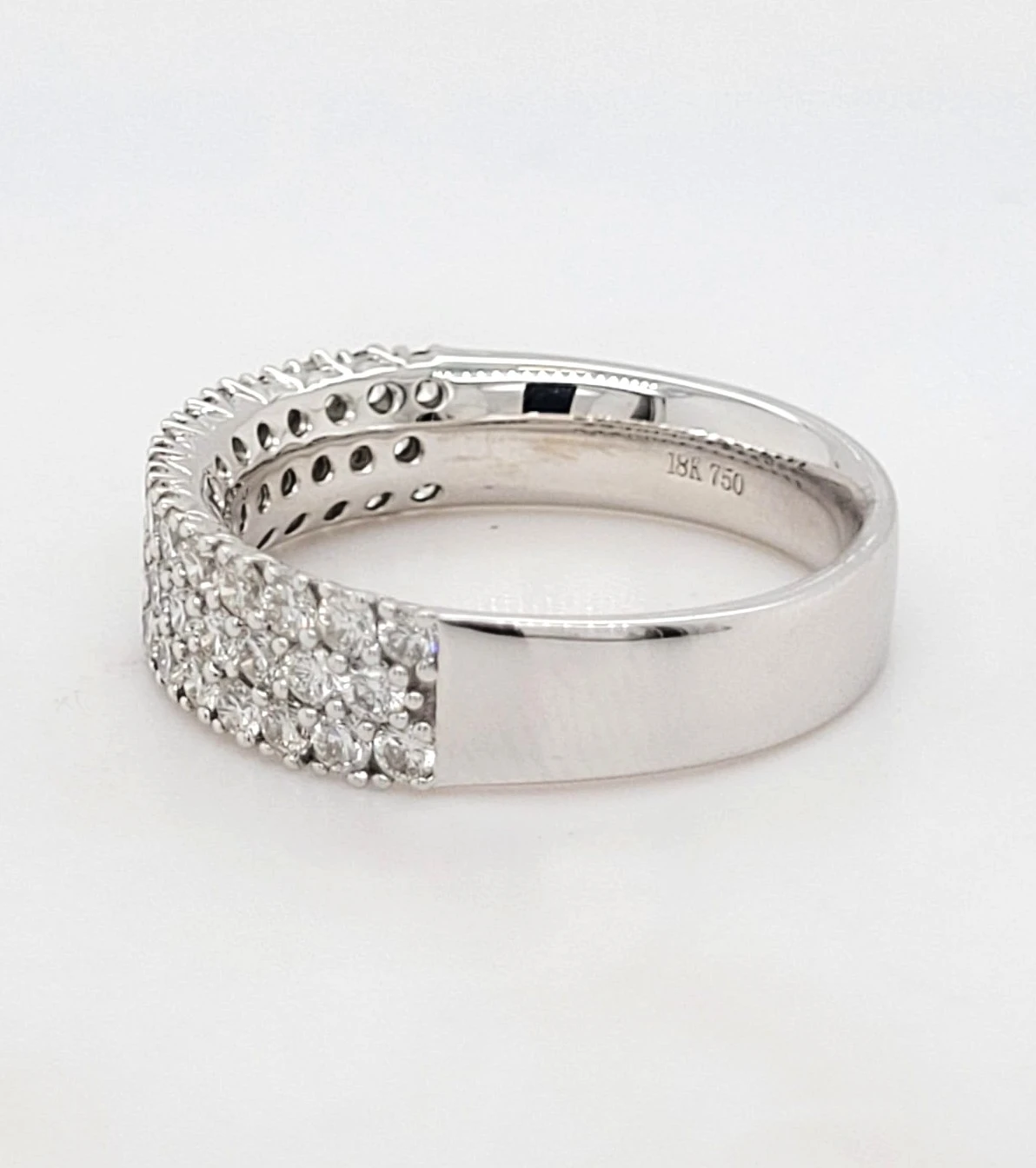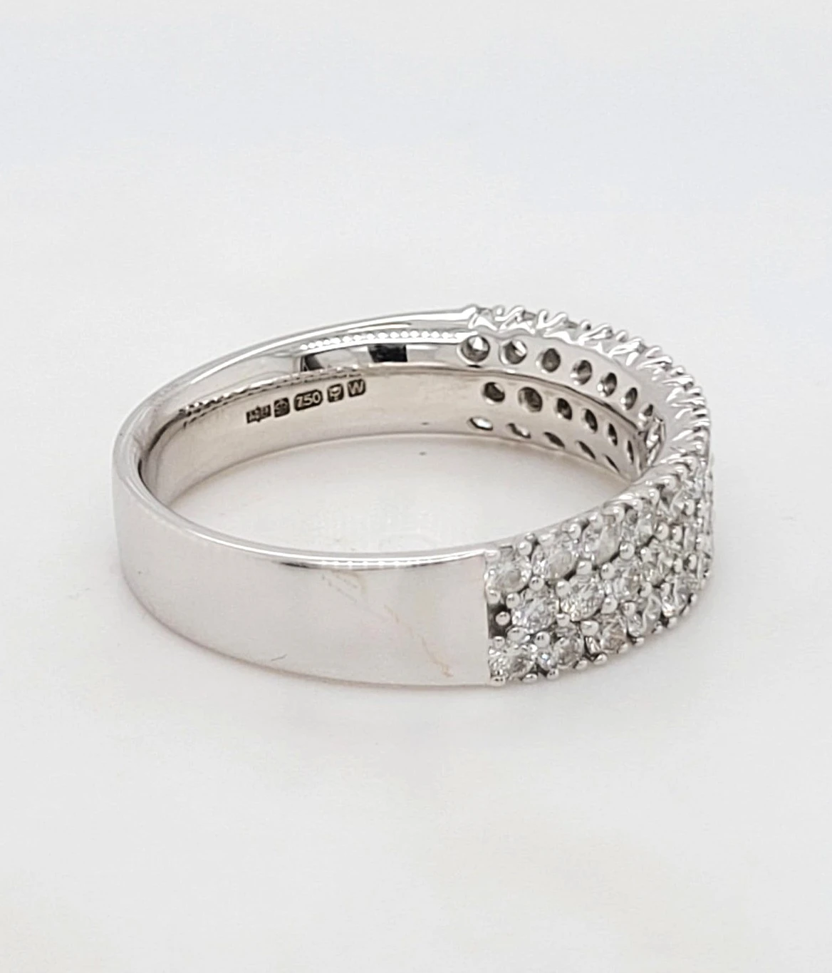 0.99ct Diamond Wedding / Eternity Band in 18ct White Gold – 5.2g Celebrate everlasting love with this stunning 0.99ct diamond wedding or eternity band, beautifully crafted in luxurious 18ct white gold. Weighing 5.2 grams, this elegant ring showcases a full row of brilliant-cut diamonds, expertly set to maximise sparkle and sophistication. Whether worn as a wedding band, anniversary gift, or statement piece, its timeless design and exceptional craftsmanship make it a symbol of enduring commitment. The perfect blend of brilliance and elegance for any occasion.