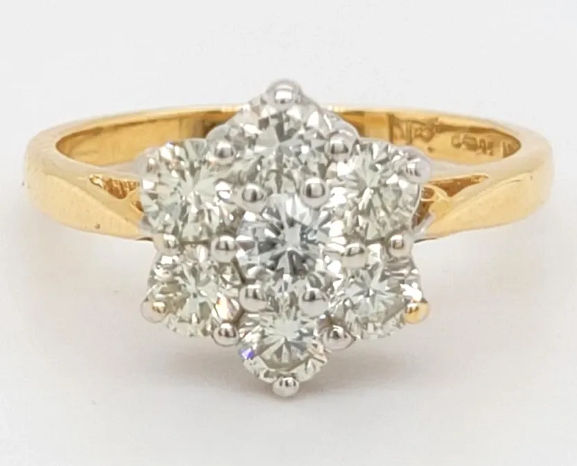 1.00ct Diamond & 18ct Gold Cluster Ring 3.6g Size M