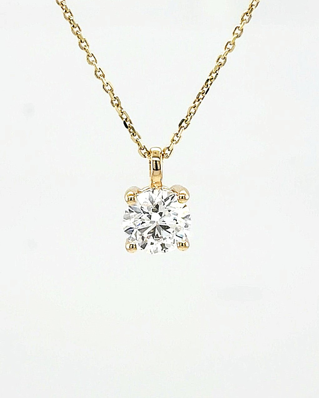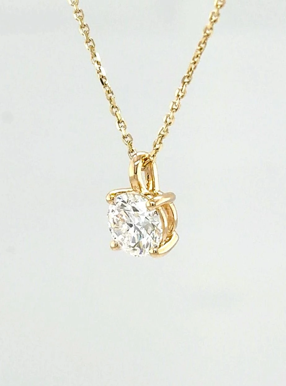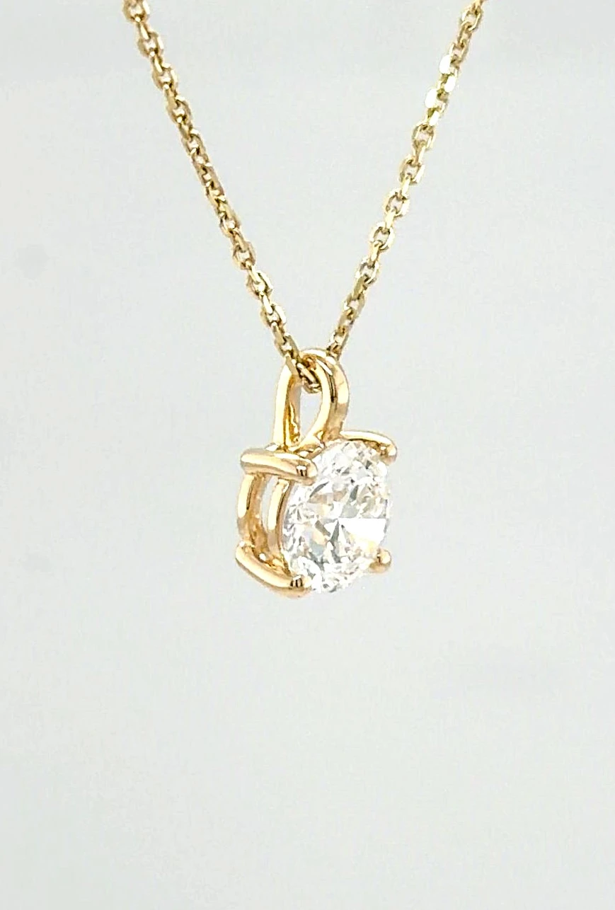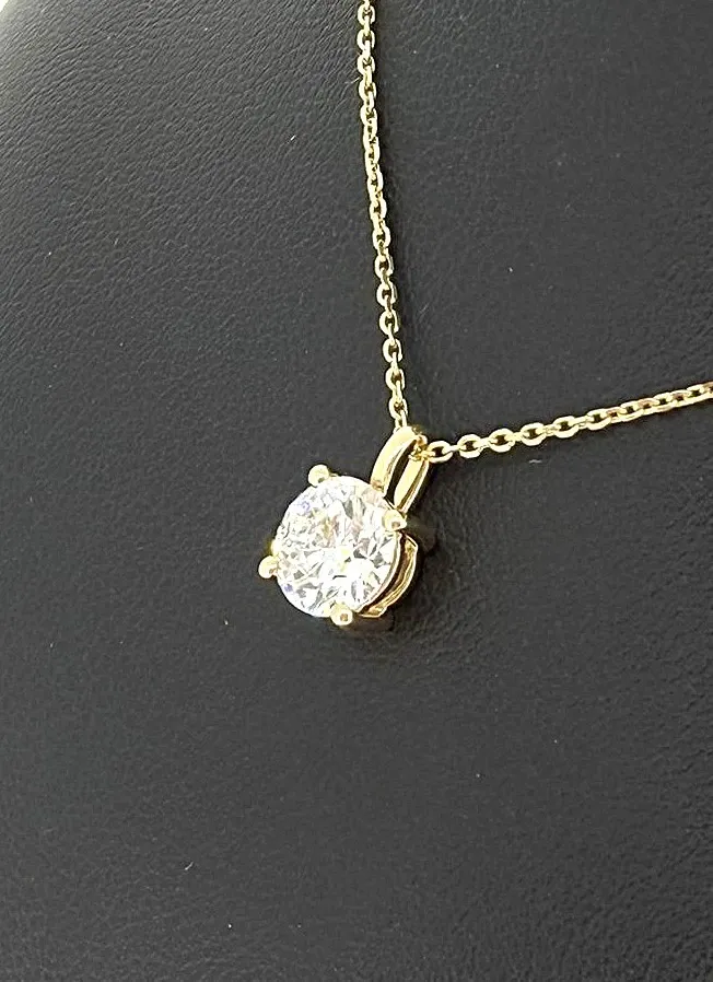 Exude timeless sophistication with this 1.00ct lab-grown diamond solitaire pendant, beautifully crafted in 9ct gold. Featuring a brilliant 1.00ct lab-grown diamond, ethically sourced for exceptional sparkle and clarity, this pendant is a conscious and elegant jewellery choice. The classic four-claw 9ct gold setting allows maximum light to enhance the diamond’s brilliance. Suspended on an adjustable 16/18-inch chain, it sits perfectly at the neckline for both everyday wear and special occasions. A thoughtful gift or a treasured addition to your personal collection, this pendant offers understated luxury and enduring style. Details: