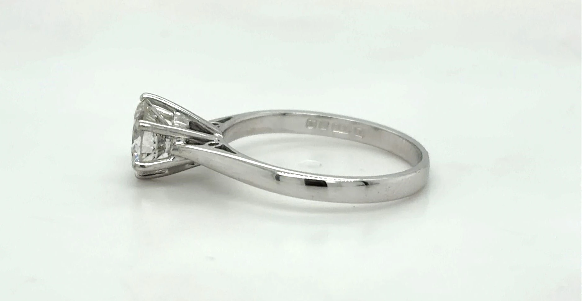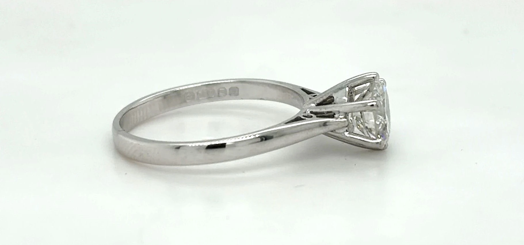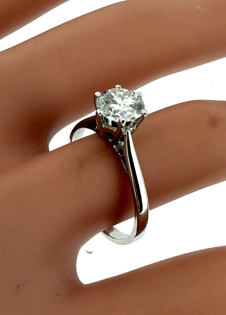 Make a statement of timeless elegance with this 1.11ct Diamond Solitaire Ring. Crafted from solid 18ct white gold, it showcases a stunning round-cut 1.11ct diamond that sparkles brilliantly from every angle. Weighing 3.0g, the ring is designed with a sleek and polished band that enhances the diamond’s natural brilliance while providing comfort for everyday wear. Perfect as an engagement ring, special gift, or a luxurious addition to your personal jewellery collection. Features: