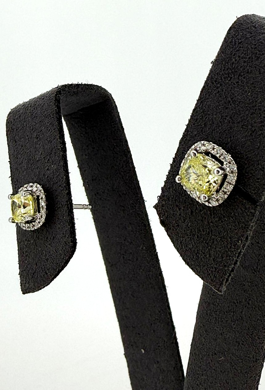Add a vibrant touch of elegance with these 1.25ct yellow and white diamond halo stud earrings, crafted in 18ct white gold. Each earring features a central yellow diamond surrounded by a halo of sparkling white diamonds, creating a striking contrast and exceptional brilliance. Weighing 2.0g, these earrings are designed for comfortable wear while making a bold, luxurious statement. Perfect for special occasions or adding a splash of colour to your everyday look, these halo studs combine timeless sophistication with contemporary style.