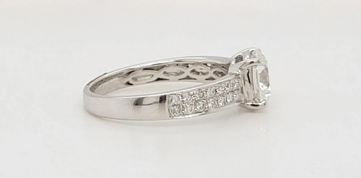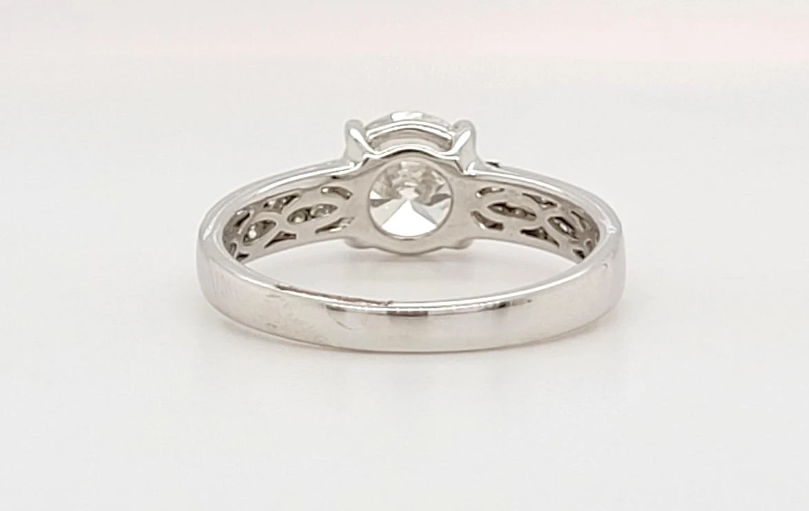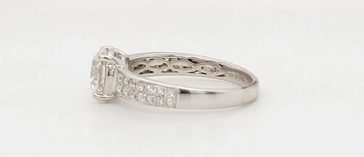 1.61ct Lab Grown Diamond & 18ct White Gold Ring – 3.0g, Size M This stunning 1.61ct lab-grown diamond is elegantly set in a sleek, modern 18ct white gold band, weighing 3.0 grams. The diamond's radiant cut maximises its brilliance, offering a captivating sparkle that’s both sustainable and sophisticated. With its clean lines and timeless design, this ring is perfect for engagements, anniversaries, or as a statement piece in any fine jewellery collection. Available in Size M, the 18ct white gold setting ensures durability and classic style, making this ethical diamond ring a luxurious yet conscious choice for the discerning wearer.