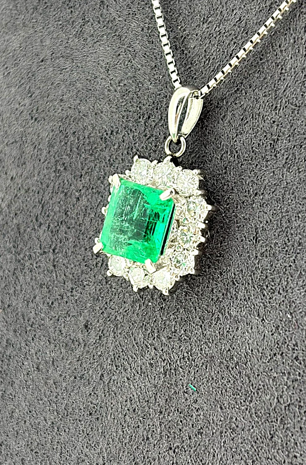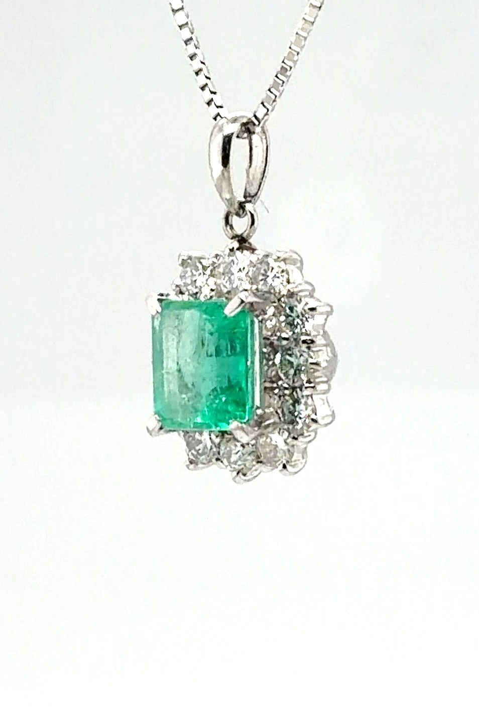 Elevate your jewellery collection with this exquisite 1.35ct Emerald & 0.34ct Diamond Pendant, masterfully crafted in luxurious platinum. The vivid green emerald radiates natural beauty, enhanced by 0.34ct of sparkling diamonds that add brilliance and contrast to the design. Suspended from a refined 17-inch platinum chain, this pendant weighs 5.5g, offering a perfectly balanced feel that combines elegance with everyday wearability. Its timeless style makes it an ideal choice for special occasions, milestone gifts, or anyone who treasures fine emerald jewellery. A classic piece that blends colour, luxury, and craftsmanship.