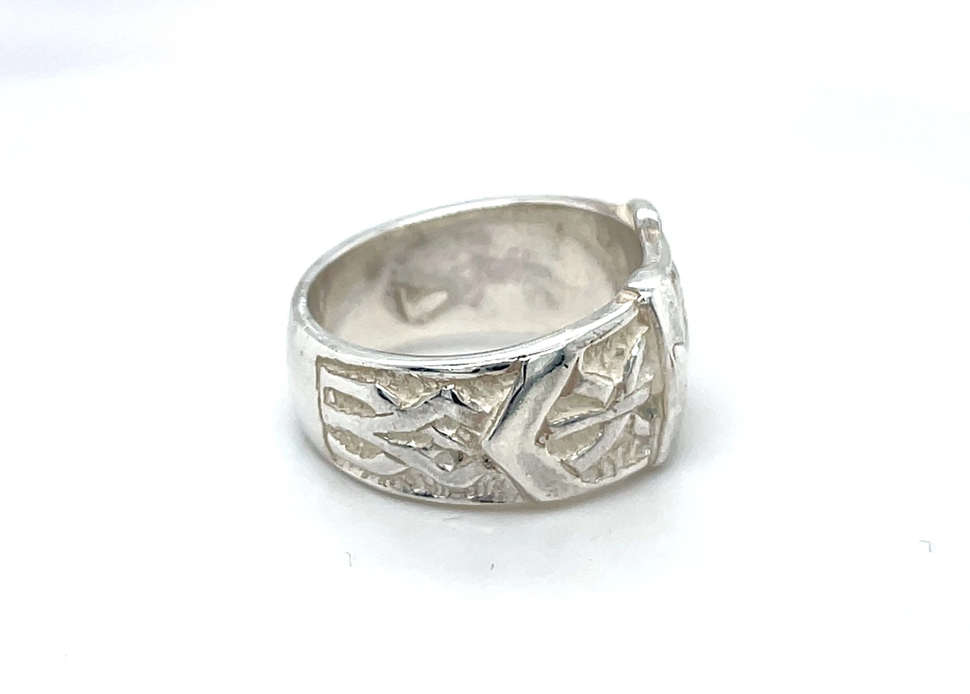 13.5mm Silver Buckle Ring – 15g Make a bold statement with this striking 13.5mm silver buckle ring. Crafted from high-quality sterling silver, the ring features a distinctive buckle design that combines classic style with a modern, edgy twist. Weighing 15 grams, this substantial ring has a solid presence on the finger while remaining comfortable for everyday wear. The polished finish enhances the natural shine of the silver, ensuring a durable and eye-catching piece that stands out in any collection. Details: