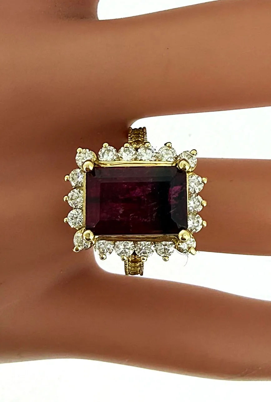 5.50ct Tourmaline & 1.00ct Diamond Halo/Dress Ring- 14ct Gold 7.0g