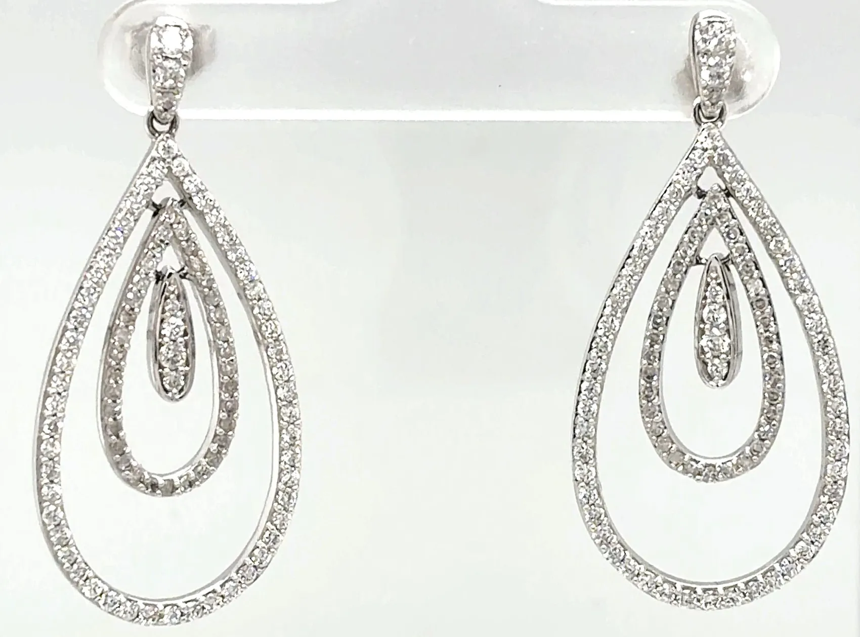 Make a statement with these stunning 1.50ct Diamond & 9ct White Gold Drop Stud Earrings, designed to bring elegance and brilliance to any occasion. Crafted in polished 9ct white gold, each earring features a graceful drop design measuring 41.00mm x 18.00mm, offering a striking yet refined silhouette. The 1.50ct of sparkling diamonds are beautifully arranged to maximise light and radiance, creating an eye-catching shimmer with every movement. Weighing 7.8g, these earrings feel luxurious while remaining comfortable for extended wear. Perfect for evening wear, celebrations, weddings, or adding a touch of glamour to any outfit, these drop studs are an exquisite addition to any fine jewellery collection.