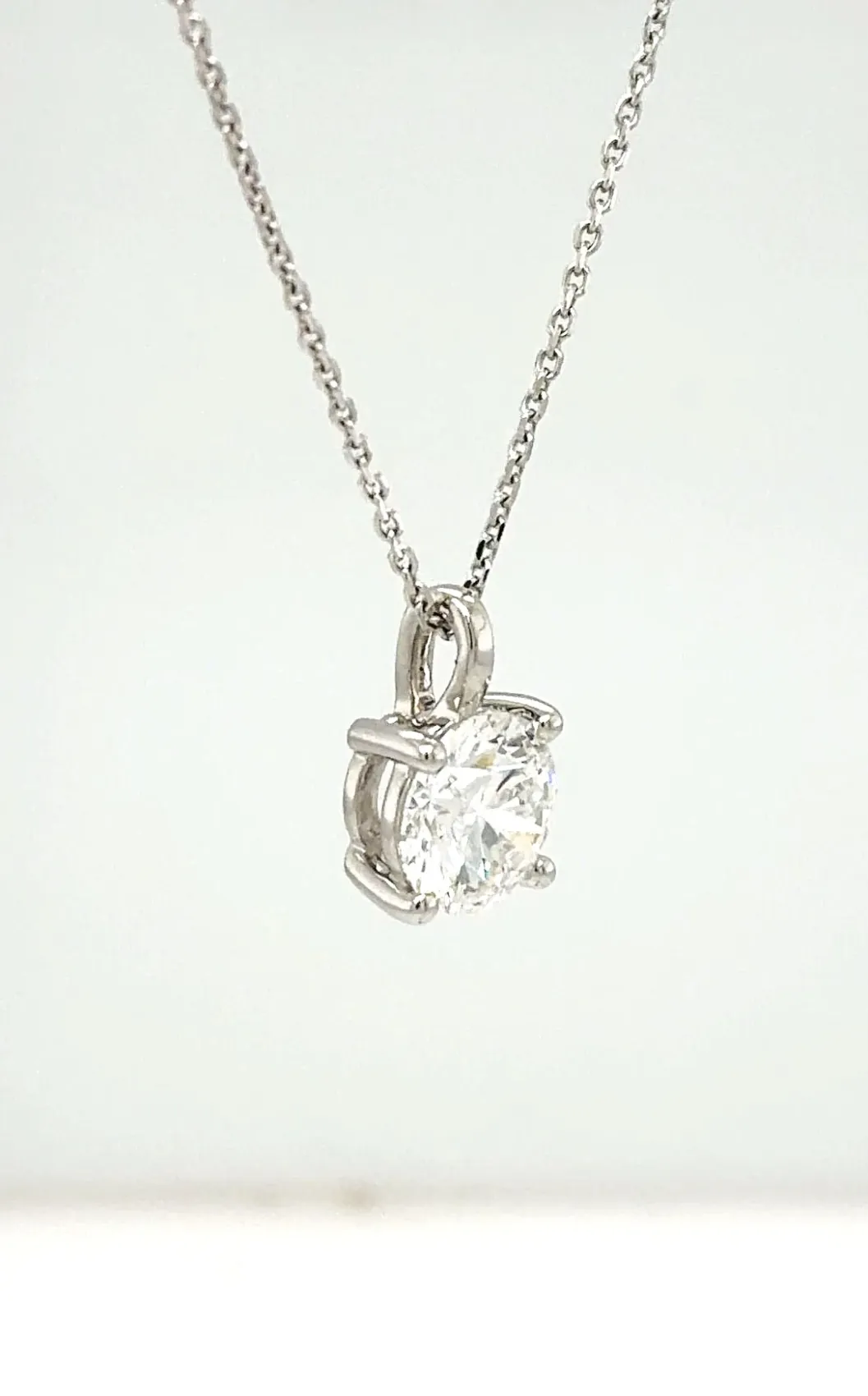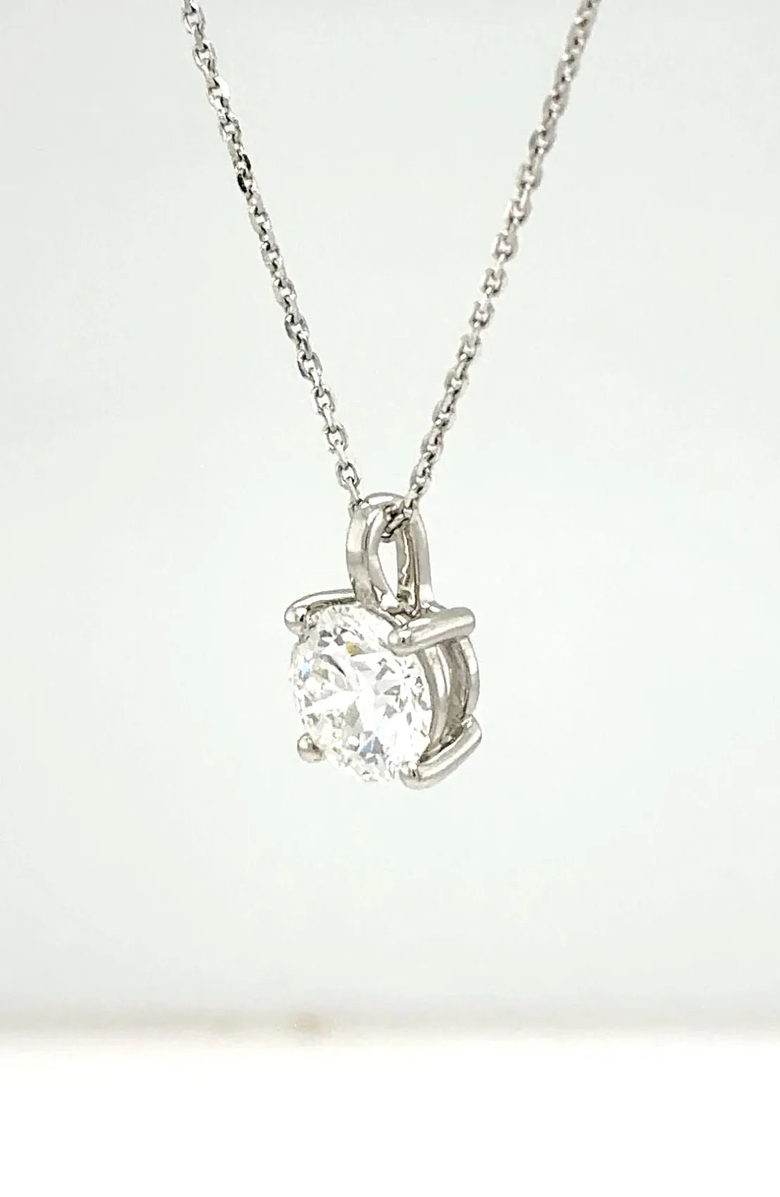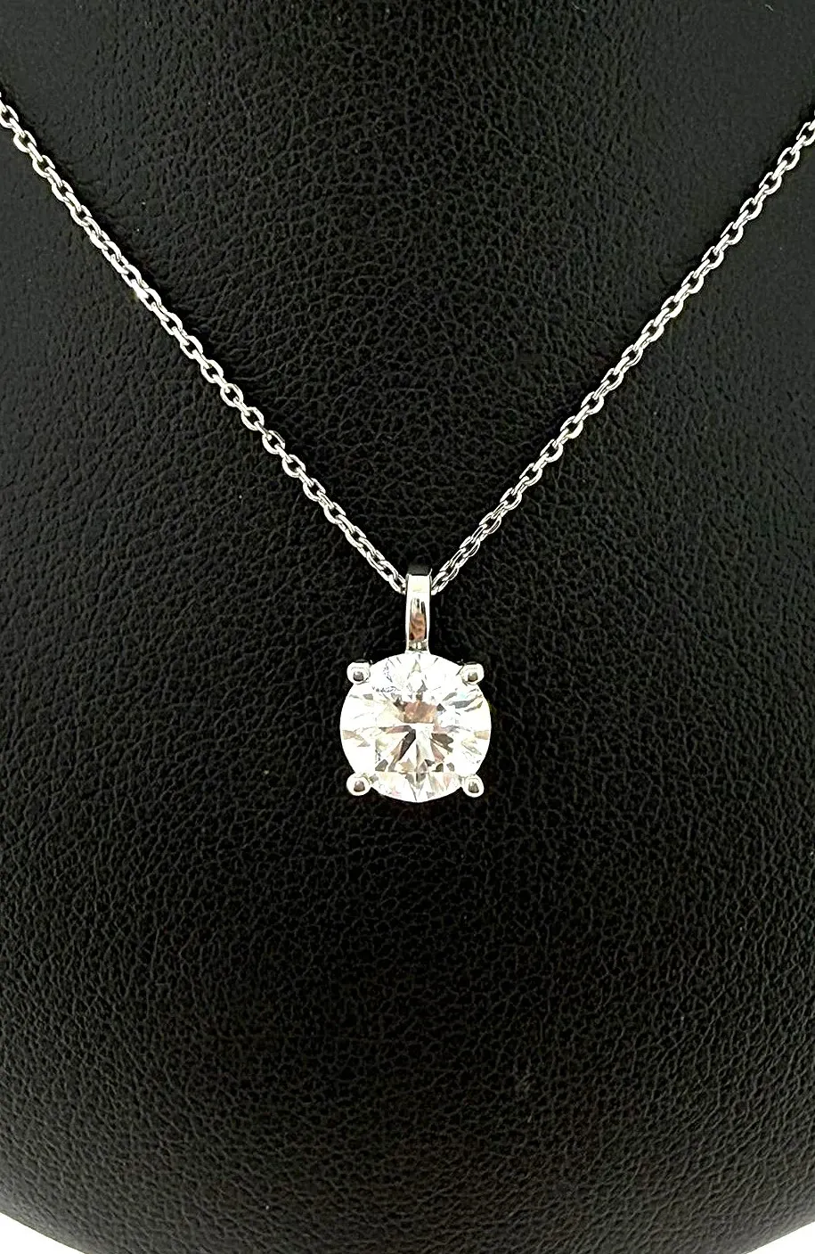 Elevate your everyday elegance with this timeless 1.50ct lab-grown diamond solitaire pendant, beautifully crafted in 9ct white gold. The striking round brilliant diamond is expertly cut to maximise brilliance, offering exceptional sparkle with a modern, ethical edge. Suspended from a sleek white-gold bale, the pendant comes complete with an adjustable 16/18 inch chain, allowing you to tailor the length to suit any neckline or occasion. Whether worn as a signature piece or gifted to someone special, this pendant embodies sophistication, sustainability, and enduring style. Features: