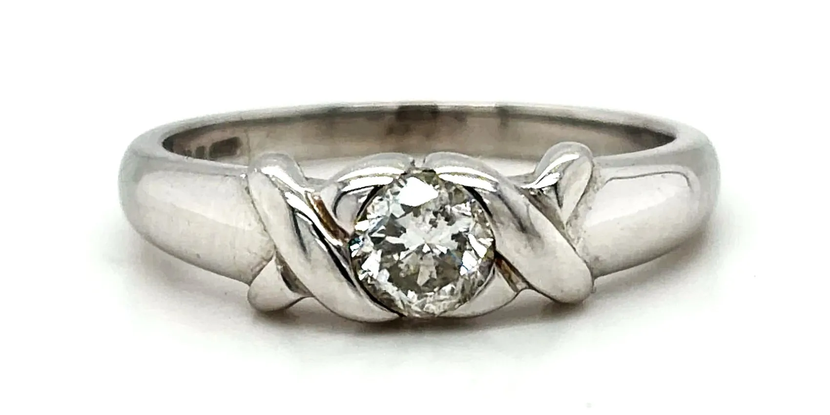 Timeless and elegant, this 18ct white gold solitaire ring features a 0.44ct diamond set to maximise brilliance and sparkle. The classic solitaire design showcases the diamond as the focal point, creating a refined and sophisticated look suitable for any occasion. Crafted in 18ct white gold and weighing 4.4 grams, the ring offers a comfortable fit while maintaining a substantial and high-quality feel. Ideal as a dress ring, engagement ring, or a refined addition to any fine jewellery collection. A versatile and luxurious diamond ring that combines classic design with expert craftsmanship