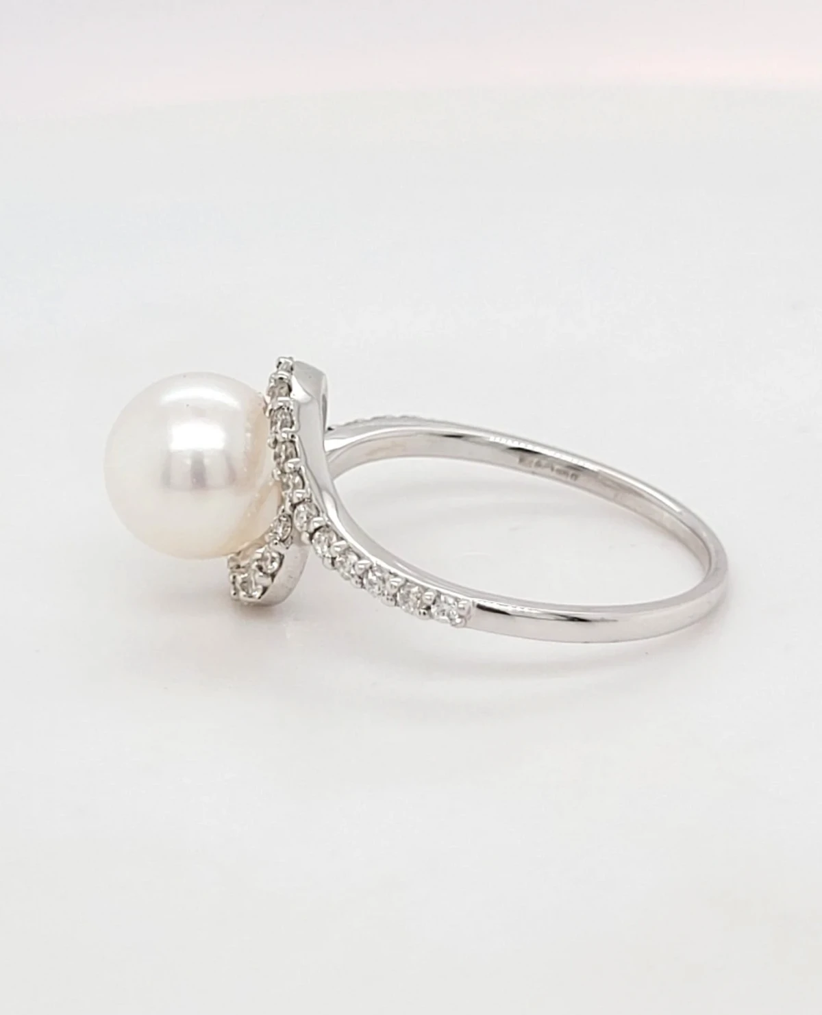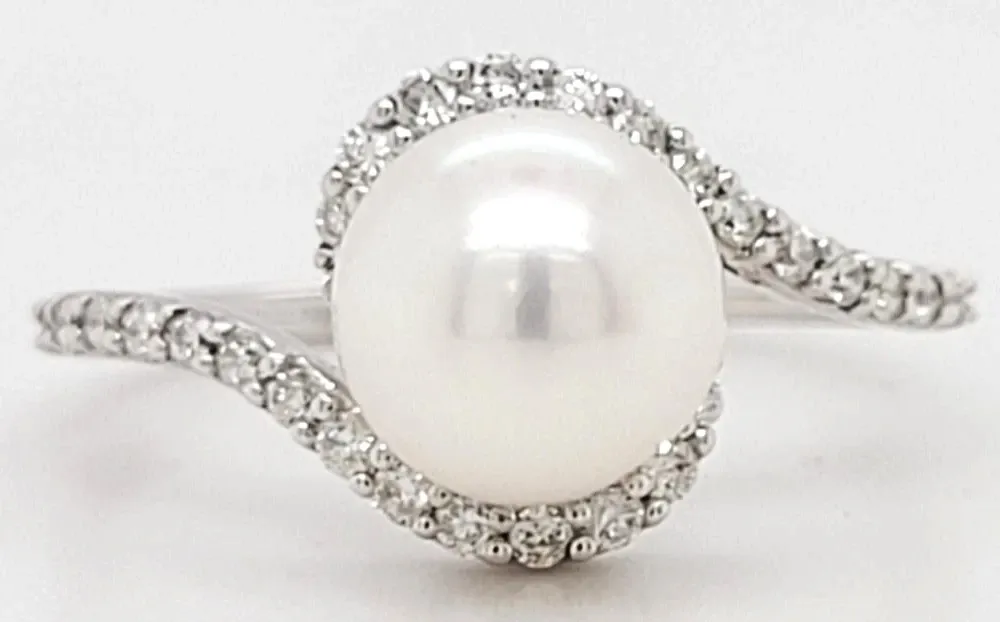 Graceful and refined, this swirl ring showcases the perfect harmony of classic beauty and modern craftsmanship. Crafted in luxurious 18ct white gold and weighing 2.7g, it features a luminous cultured pearl embraced by a flowing swirl of 0.25ct sparkling diamonds. A striking yet elegant piece ideal for special occasions or daily sophistication, this ring makes a thoughtful gift or a cherished addition to any fine jewellery collection.