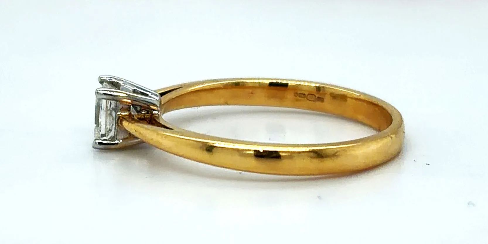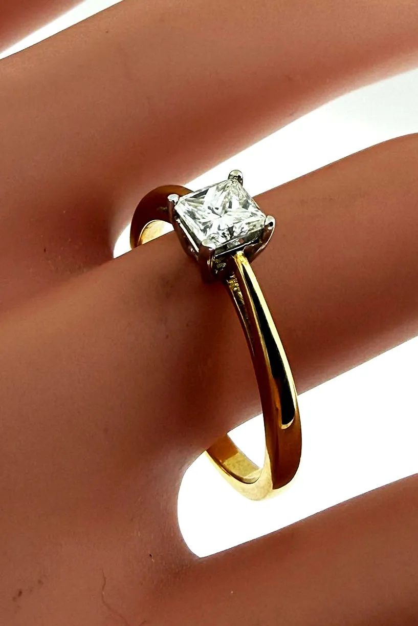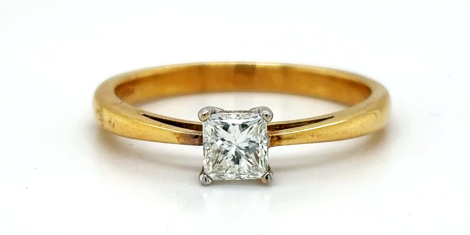 Classic, elegant, and timeless, this 18ct gold solitaire ring features a sparkling 0.50ct diamond set in a refined four-prong setting, maximising brilliance and light reflection. The clean, minimalist design ensures the diamond takes centre stage, offering understated sophistication. Crafted in 18ct gold and weighing 3.3 grams, the ring provides a comfortable fit and enduring quality. Perfect as an engagement ring, dress ring, or investment-quality jewellery piece, this solitaire ring combines enduring style with exceptional craftsmanship. A versatile and elegant diamond ring suitable for any occasion.