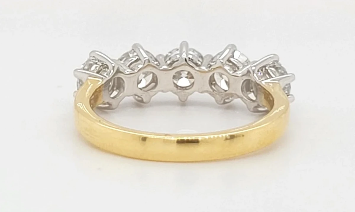 Make a bold statement with this stunning 5 stone ring featuring a total of 2.01 carats of brilliant lab grown diamonds, set in luxurious 18ct gold. Designed to dazzle from every angle, each diamond is carefully chosen to create a harmonious and sparkling arrangement that captures light beautifully. Features: