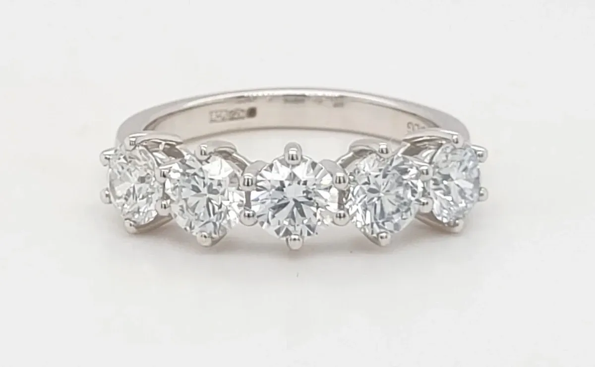 2.01ct Platinum & 5 Stone Lab Grown Diamond Ring – Size M, 5.9g Exude timeless elegance with this exquisite 5 stone ring, featuring a total of 2.01 carats of brilliant lab grown diamonds set in luxurious platinum. The classic five-stone design symbolises past, present, and future, making it a meaningful choice for engagements, anniversaries, or special milestones. Features: