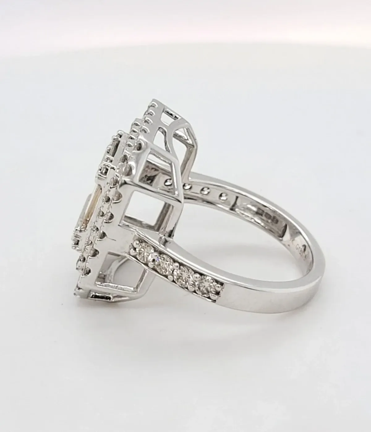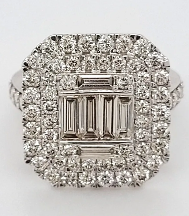 2.55ct Diamond & 9ct White Gold Halo Cluster Dress Ring – 6.1g Turn heads with this stunning halo cluster dress ring, expertly crafted in 9ct white gold. The centrepiece features an impressive 2.55 carats of dazzling diamonds, arranged in a timeless cluster design that exudes elegance and sophistication. Weighing 6.1 grams, this ring offers a luxurious feel while remaining comfortable for extended wear. Perfect for special occasions or adding a touch of glamour to everyday outfits.