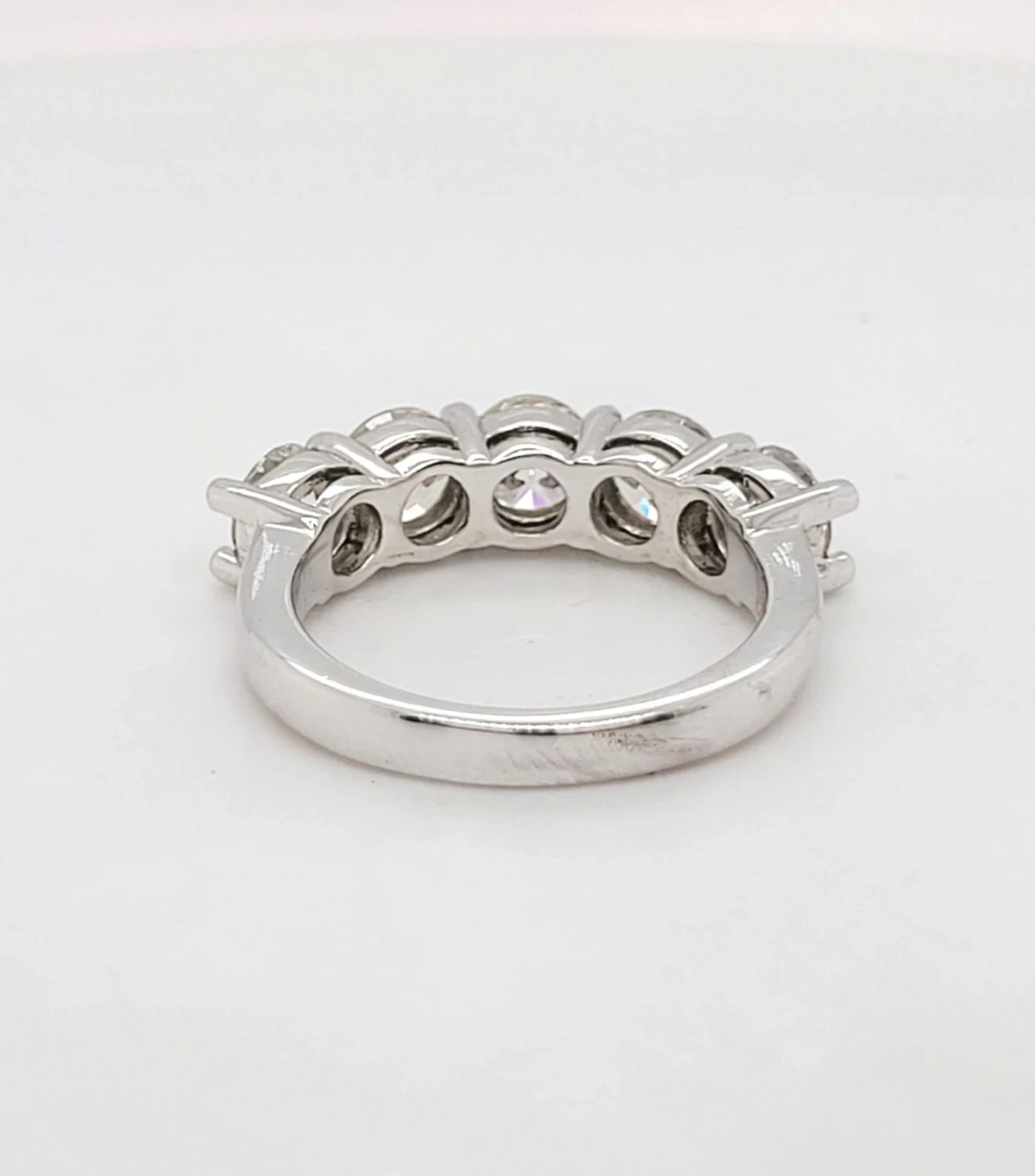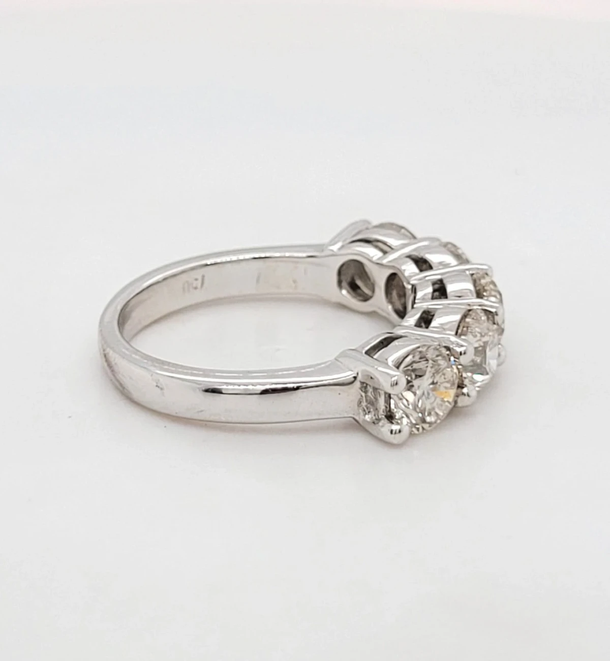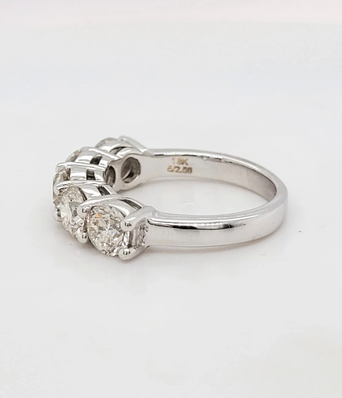 Celebrate everlasting love with this exquisite 5-stone eternity ring, showcasing a dazzling total of 2.56ct of brilliant-cut diamonds. Expertly crafted in 18ct white gold and weighing 5.7g, each stone is set in a sleek, classic design that radiates timeless elegance. Perfect for anniversaries, milestone moments, or as a luxurious wedding band, this ring is a bold yet refined statement of enduring commitment.