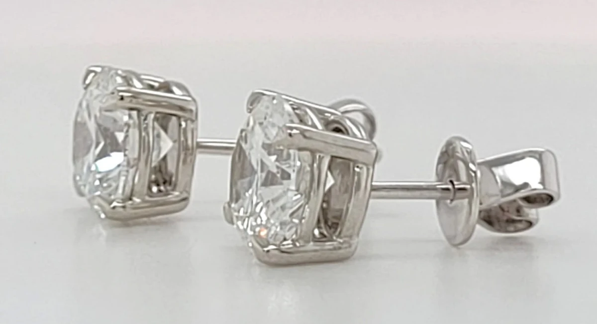 4.03ct Lab Grown Diamond & Platinum Solitaire Stud Earrings – 5.0g Make a bold and elegant statement with these stunning 4.03ct lab grown diamond solitaire stud earrings, set in luxurious solid platinum. Perfectly crafted for brilliance and durability, these earrings showcase exceptional sparkle and clarity, offering the timeless appeal of classic solitaire studs with a modern, ethical twist. Weighing 5.0 grams, these platinum earrings combine strength and sophistication, making them ideal for special occasions or elevating everyday style. The lab created diamonds deliver remarkable fire and brilliance, all while being a sustainable and responsible choice.