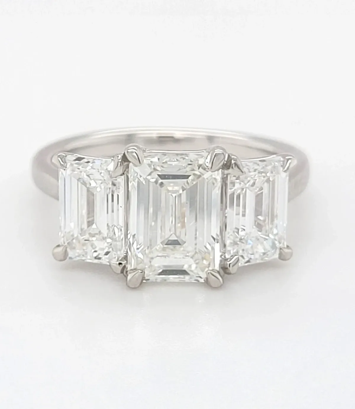 4.06ct Lab Grown Diamond & Platinum Trilogy Ring – Size M (7.0g) Bold, brilliant, and beautifully symbolic, this 4.06ct lab grown diamond trilogy ring is a breathtaking celebration of life’s most meaningful moments. Crafted in luxurious platinum and weighing 7.0 grams, it features three exquisite diamonds that represent the past, present, and future—making it an exceptional choice for an engagement, anniversary, or milestone gift. Each lab created diamond is expertly cut for maximum sparkle and fire, offering the beauty and clarity of a mined stone with a significantly lower environmental impact. The sleek platinum band provides enduring strength and a radiant contrast to the diamonds, creating a timeless design that’s both ethical and elegant.