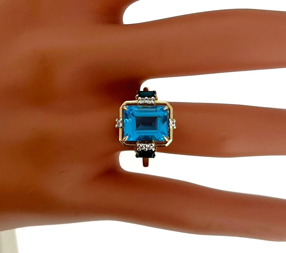 6.00ct Topaz & 9ct Gold Dress Ring – 3.7g Make a statement with this stunning 9ct gold dress ring, featuring a brilliant 6.00ct topaz at its centre. Weighing 3.7 grams, the ring combines elegance with a comfortable fit, allowing the vibrant topaz to catch the light from every angle. Perfect for special occasions or as a standout piece in your jewellery collection, this ring exudes classic sophistication and timeless charm. Its bold yet refined design makes it an ideal gift or a treasured personal accessory.
