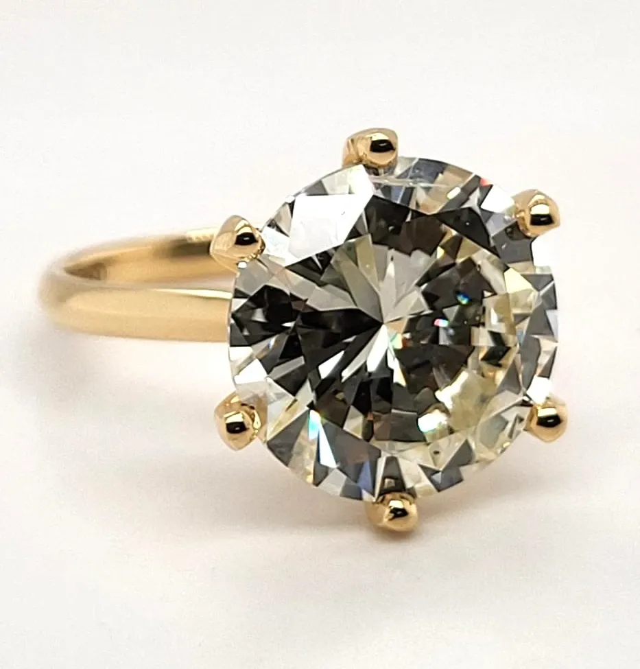 7.75ct Diamond & 18ct Gold Solitaire Ring – 5.4g Make a bold statement with this 7.75ct diamond solitaire ring crafted in luxurious 18ct gold. Weighing 5.4g, it offers a striking yet comfortable fit, perfect for those who appreciate elegance and sophistication. The dazzling 7.75ct diamond takes centre stage, beautifully highlighted by the warm glow of 18ct gold. Its classic solitaire design ensures that the gemstone remains the focal point, delivering timeless style that never goes out of fashion. Ideal for men or women, this ring combines luxury, brilliance, and enduring quality in a statement-making piece of jewellery. Features: