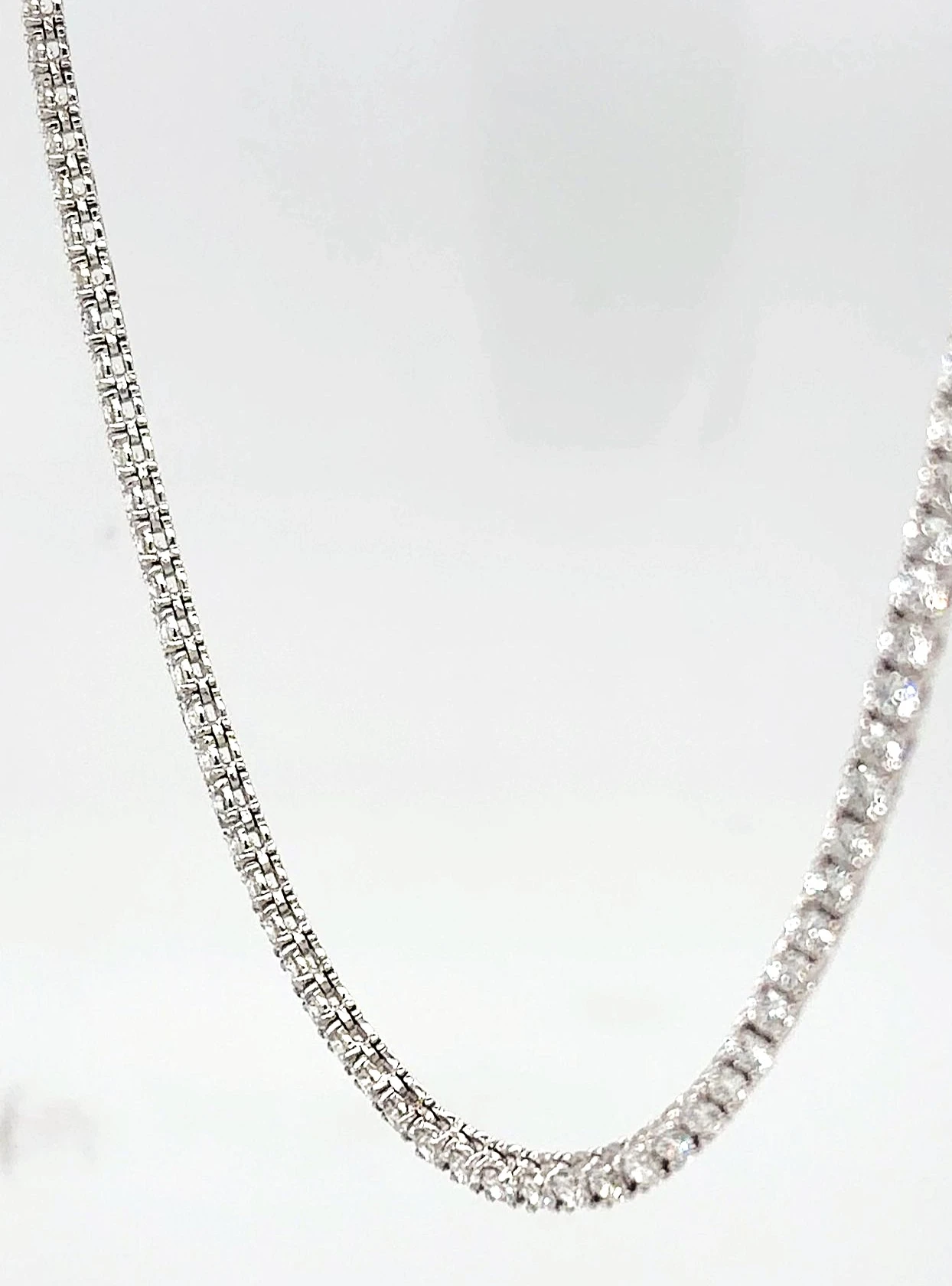 7.88ct Lab Grown Diamond & 9ct White Gold 2.5mm Tennis Necklace 17 Inch ( 12.7g)